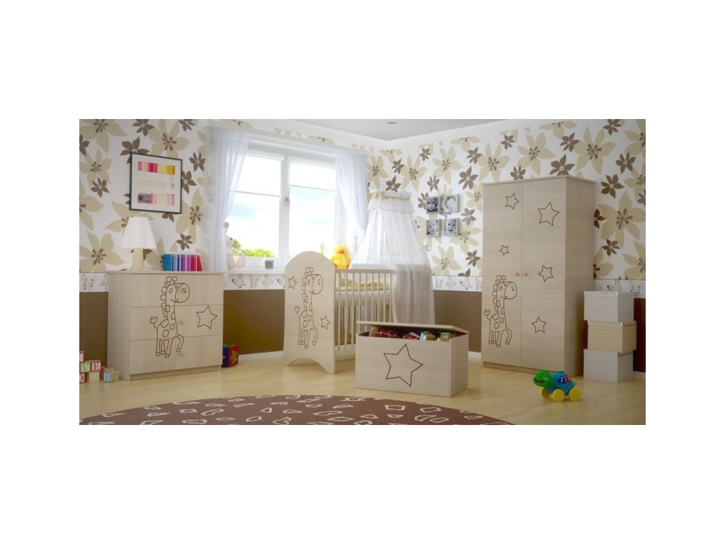 BabyBoo Dětská postýlka LUX ŽIRAFKA 120x60cm. Gravírovaný obrázek.