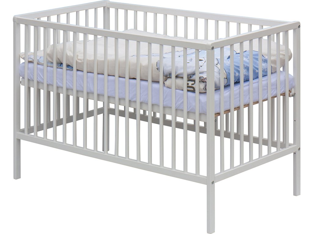 1. Dětská dřevěná postýlka 120x60 cm - bílá, masiv buk, 3 vyndavací příčky, 3 polohy roštu