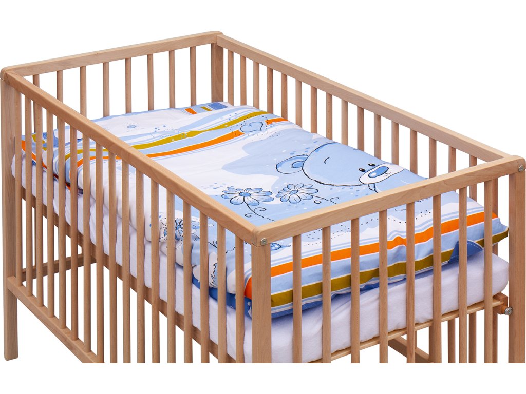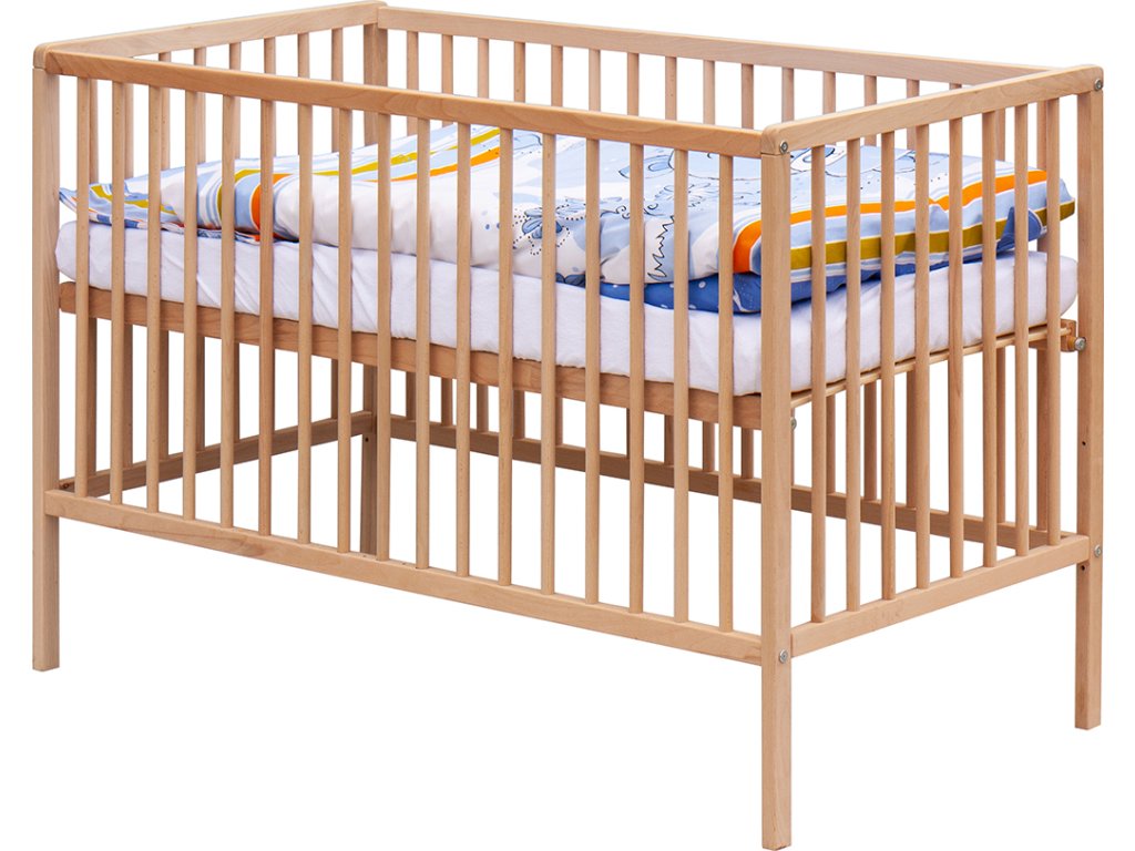 1. Dětská dřevěná postýlka 120 x 60 cm - přírodní, masiv borovice, 3 vyndavací příčky, 3 polohy roštu,