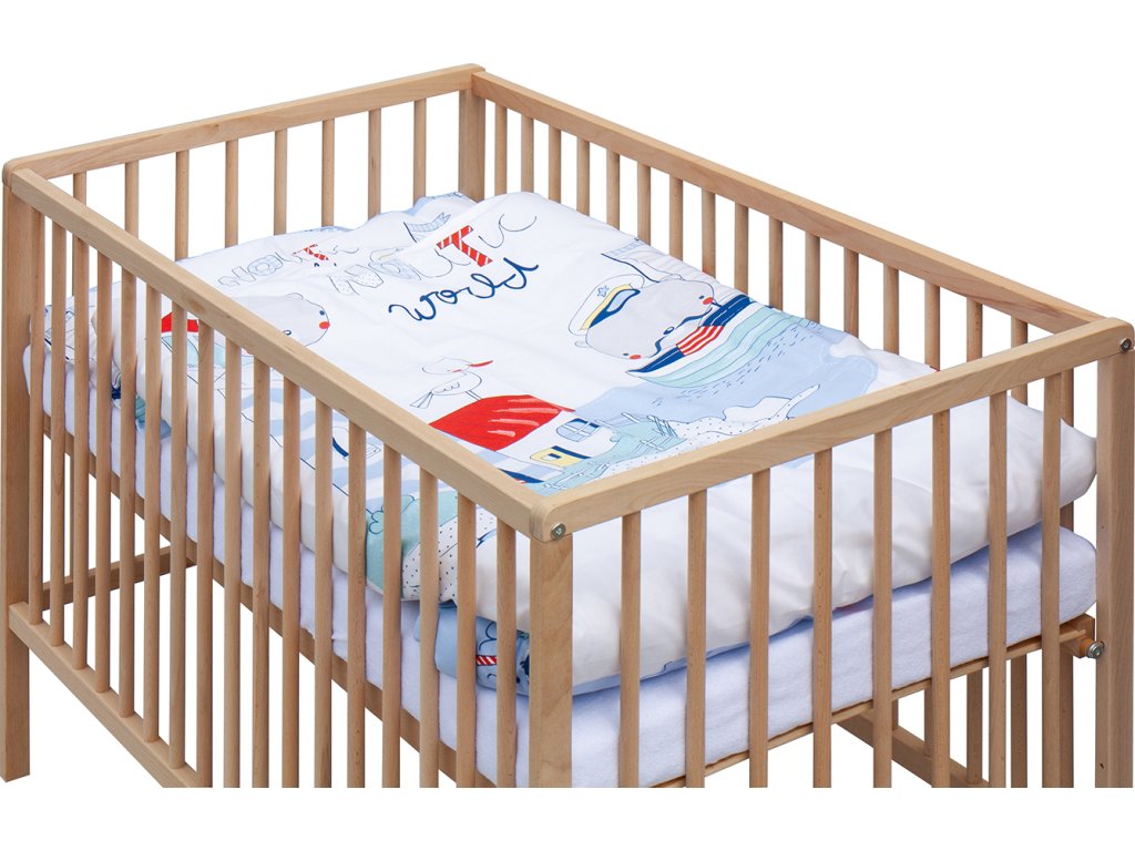 1. Dětská dřevěná postýlka 120 x 60 cm - přírodní, masiv borovice, 3 vyndavací příčky, 3 polohy roštu,