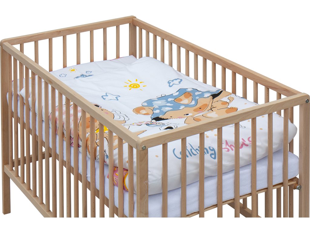 1. Dětská dřevěná postýlka 120 x 60 cm - přírodní, masiv borovice, 3 vyndavací příčky, 3 polohy roštu,