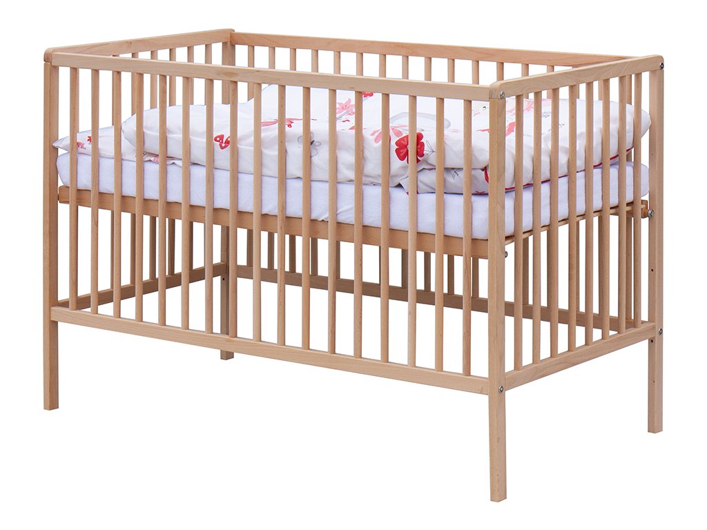 1. Dětská dřevěná postýlka 120 x 60 cm - přírodní, masiv borovice, 3 vyndavací příčky, 3 polohy roštu,