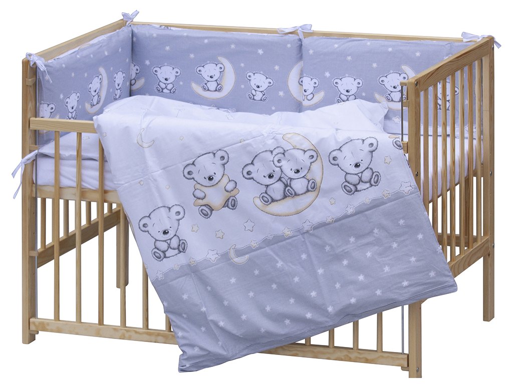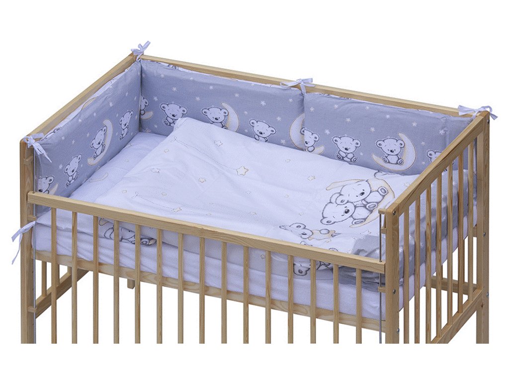 Dětská postýlka s kompletní soupravou povlečení a doplňků Toro - šedá