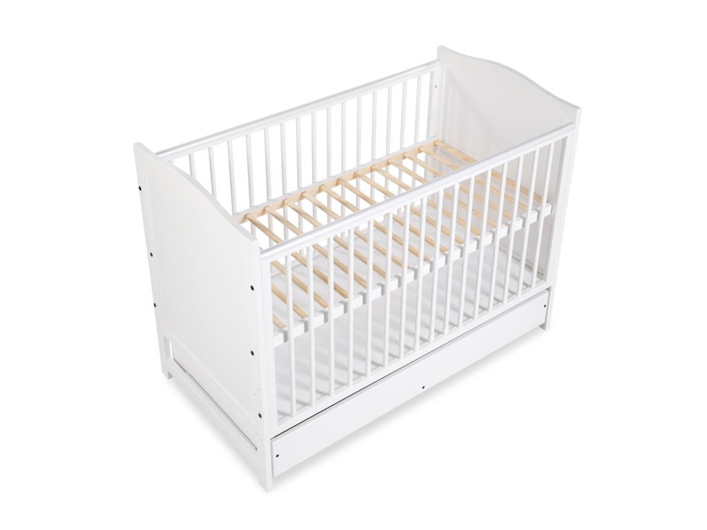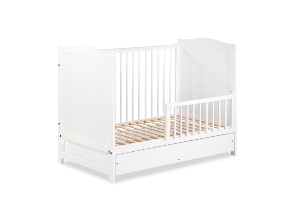 KLUPŚ postýlka FELIX bílá se šuplíkem a zábranou 120x60