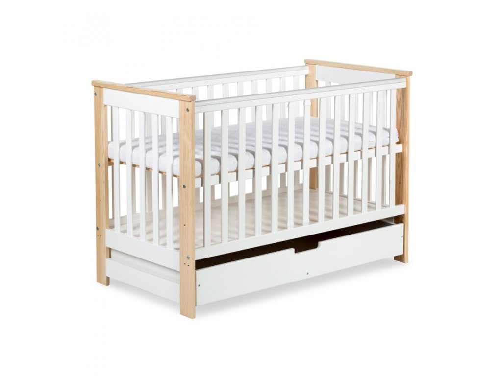 KLUPS Postýlka Iwo se šuplíkem a zábranou borovice/bílá