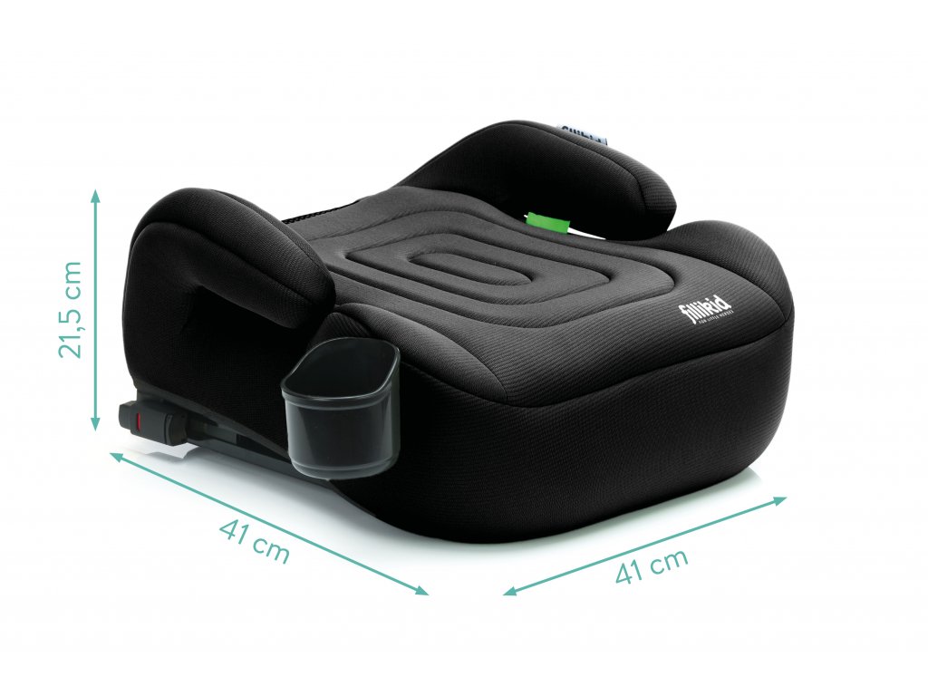 Podsedák s nastavitelným Isofixem a držákem na láhev; certifikováno podle nového standardu i-Size, ECE R 129. Určeno pro děti s výškou 125-150 cm. Včetně nastavitelného vedení pásu pro větší bezpečnost.