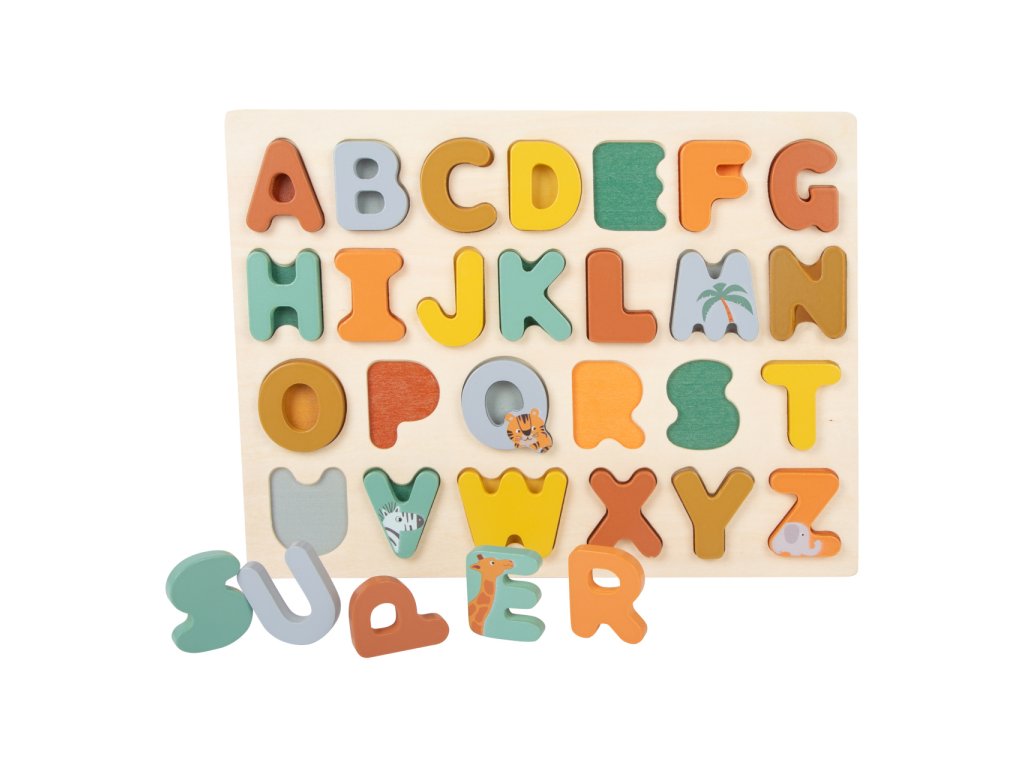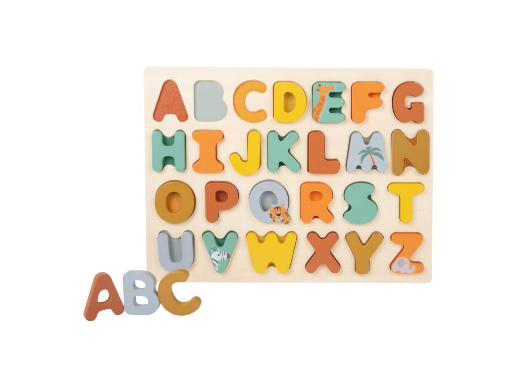 Naučte se abecedu hravým způsobem! S tímto dřevěným puzzlem v trendy barvách se děti naučí abecedu a procvičí si jemnou motoriku formou hry. Najdete zde 26 vystouplých dřevěných písmen, která lze jednoduše uchopit a vložit do správných otvorů i malýma rukama. Můžete je ale také postavit mimo své otvory a složit slova! Roztomilé motivy safari jako zebra, žirafa, slon nebo tygr děti nadchnou k učení se písmen abecedy. Hlavní vlastnosti: pastelové barvyzákladová deska a 26 dílůskvělá didaktická pomůckarozvíjí logické myšleníSizing info