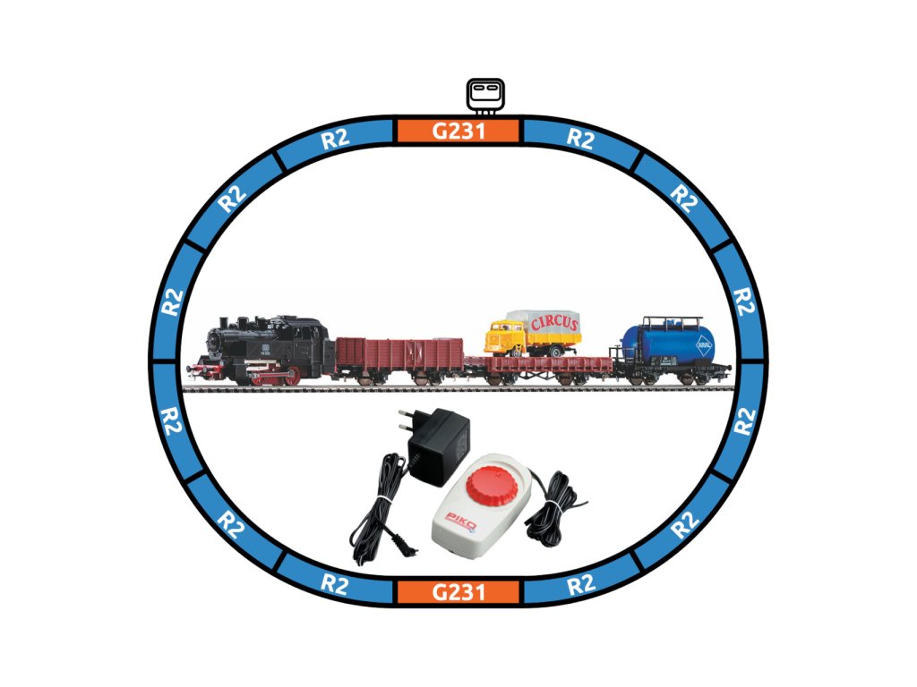 Startovací sada se skládá z parní lokomotivy 0-4-0 BR 98 a tří nákladních vozů - vysokostěnného, plošinového a cisternového, nechybí ani základní ovál. Koleje s podložím zajišťují vyšší odolnost a životnost při opakovaném rozebírání. Nákup sady je vhodné doplnit o příslušný spotřební materiál. Plocha základny: 110x88 cmMinimální konstrukční plocha: 120x98 cm Hlavní vlastnosti: analogové ovládánídvounápravový cisternový vůz součástíkoleje s podložím Tato sada obsahuje: parní lokomotiva BR 98 DB III - 50500 (1 ks)různé nákladní vozy DB III (3 ks)kolej oblouková R2 s podložím - 55412 (12 ks)kolej rovná G231 s podložím - 55401 (1 ks)kolej rovná G231 s podložím (přípoj pro napájecí svorku) - 55406 (1 ks)podloží pro napájecí svorku - 55447 (1 ks)napájecí svorka ke kolejím analogová - 55270 (1 ks)základní analogový ovladač s napájecím zdrojem - 55003 (1 ks) Dokumentace: Návod k obsluze a seznam náhradních dílů soupravy č. 57113 (DE, EN, F, NL, ITA, E, POL, RUS, CHN, CZ)Návod k obsluze a seznam náhradních dílů modelu č. 50500 (DE, EN, F, NL, ITA, E, POL, RUS, CHN, CZ)Sizing info