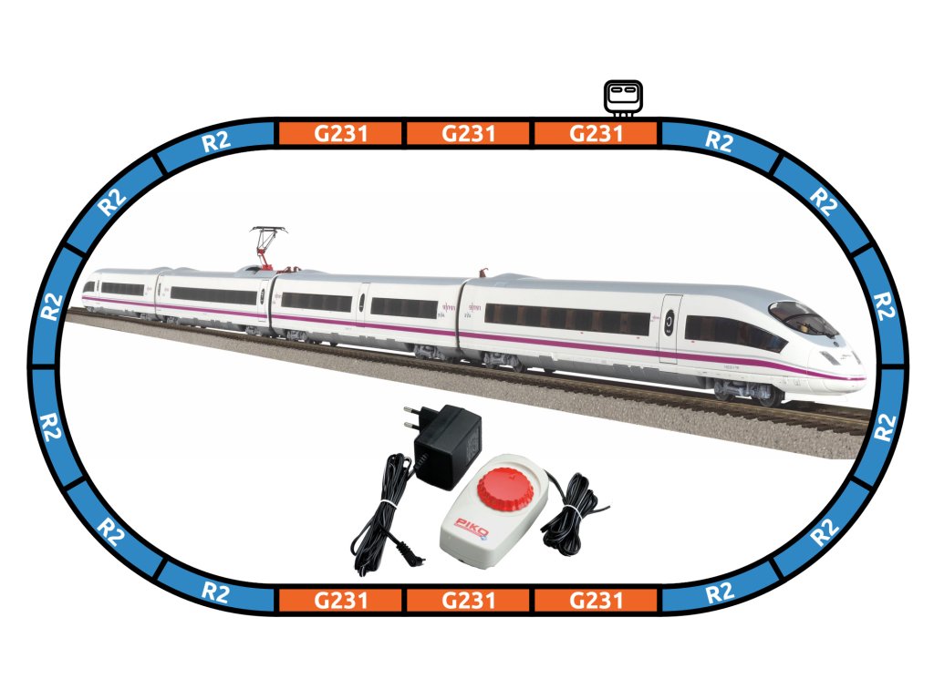 Novinka pro rok 2021. Startovací sada skládající se z čtyřdílné elektrické soupravy španělských vysokorychlostních dálkových drah, prodlouženého oválu a analogového ovládání s napájením. Lokomotivu lze dovybavit zvlášť určeným digitálním dekodérem se zvukovým modulem a reproduktorem. U modelu jsou použita nestandardní krátká spřáhla s konektory. Koleje s podložím zajišťují vyšší odolnost a životnost při opakovaném rozebírání. Nákup sady je vhodné doplnit o příslušný spotřební materiál. Plocha základny: 158x88 cmMinimální konstrukční plocha: 168x98 cm Hlavní vlastnosti: analogové ovládáníčtveřice nápravsvětla s přepínáním barvy dle směru jízdyrozhraní NEM 652šachta dle NEM 362 s kinematikou krátkého spřáhlakoleje s podložím Tato sada obsahuje: čtyřdílná elektrická souprava Velaro E (ICE 3) AVE RENFE (1 ks)kolej oblouková R2 s podložím - 55412 (12 ks)kolej rovná G231 s podložím - 55401 (5 ks)kolej rovná G231 s podložím (přípoj pro napájecí svorku) - 55406 (1 ks)podloží pro napájecí svorku - 55447 (1 ks)napájecí svorka ke kolejím analogová - 55270 (1 ks)základní analogový ovladač s napájecím zdrojem - 55003 (1 ks) Dokumentace: Návod k obsluze a seznam náhradních dílů soupravy č. 97930 (DE, EN, F, ITA, E, CHN, NL, POL, RUS, CZ, HUN)Sizing info
