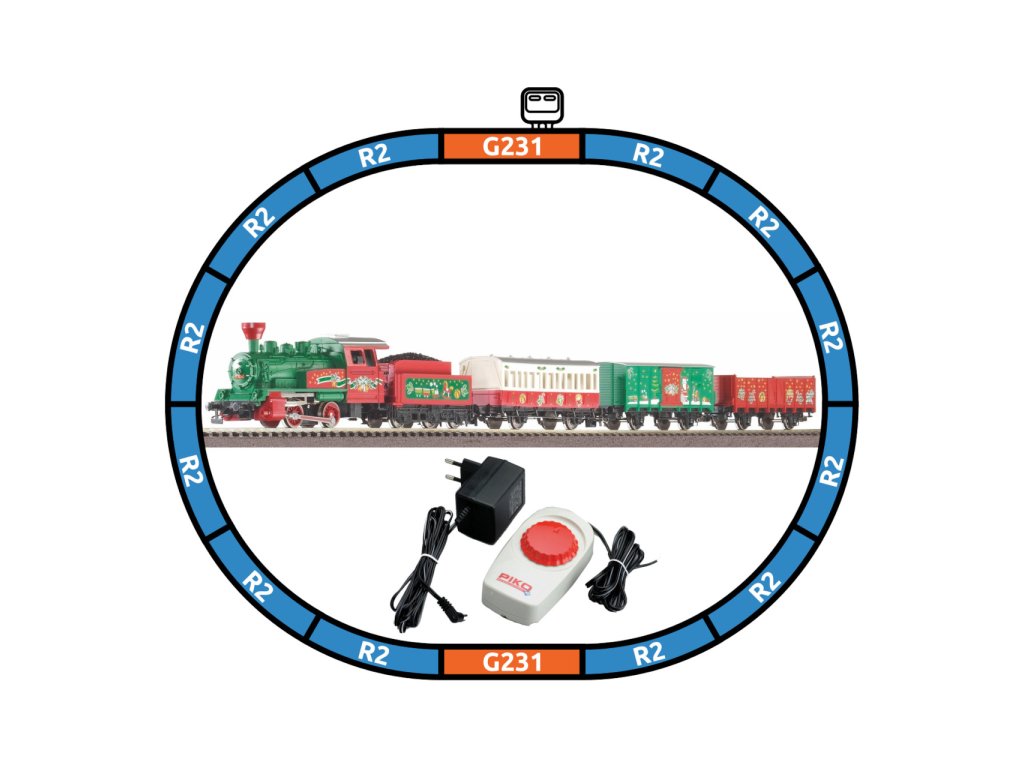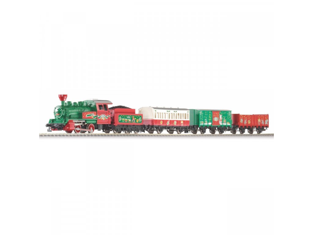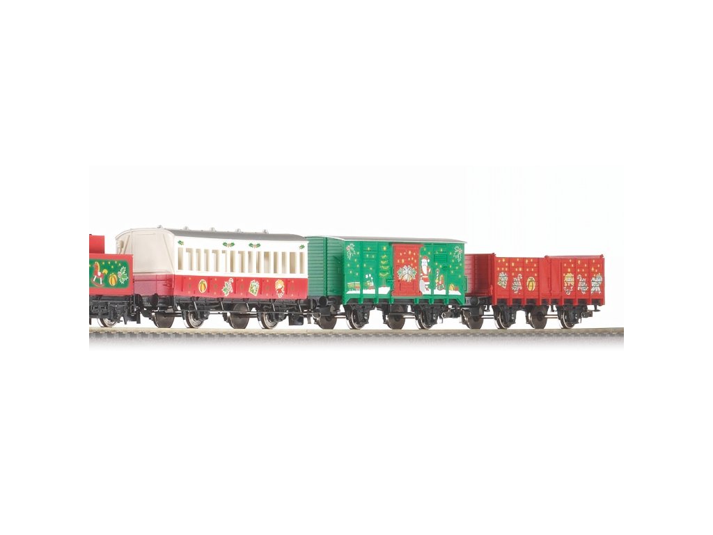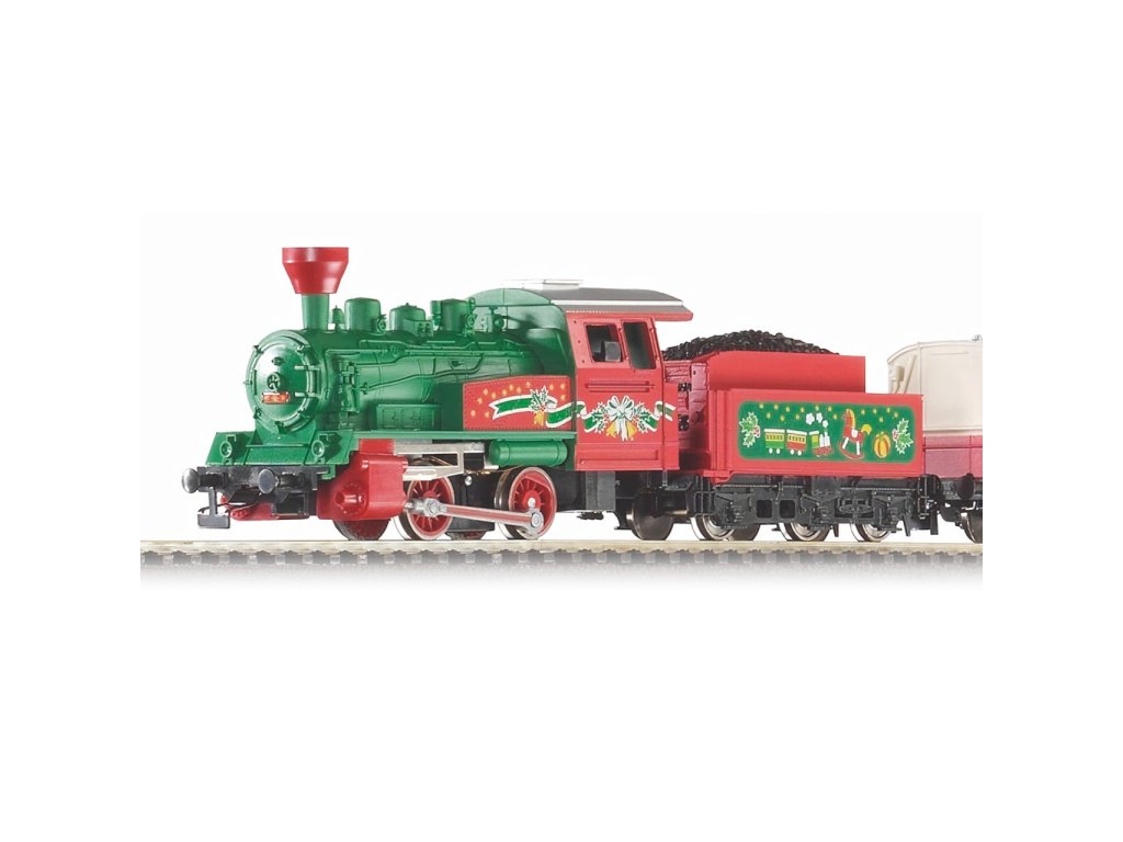 Startovací sada speciální, barevné vánoční soupravy skládající se z parní lokomotivy 0-4-0, jednoho osobního vozu a dvou nákladních, krytého a otevřeného, základního oválu a analogového ovládání s napájením. Koleje s podložím zajišťují vyšší odolnost a životnost při opakovaném rozebírání. Nákup sady je vhodné doplnit o příslušný spotřební materiál. Plocha základny: 110x88 cmMinimální konstrukční plocha: 120x98 cm Hlavní vlastnosti: analogové ovládánídvojice nápravtřínápravový tendrspojovací hák v nestandardní šachtěkoleje s podložím Tato sada obsahuje: parní lokomotiva s tendrem (1 ks)osobní vůz (1 ks)různé nákladní vozy (2 ks)kolej oblouková R2 s podložím - 55412 (12 ks)kolej rovná G231 s podložím - 55401 (1 ks)kolej rovná G231 s podložím (přípoj pro napájecí svorku) - 55406 (1 ks)podloží pro napájecí svorku - 55447 (1 ks)napájecí svorka ke kolejím analogová - 55270 (1 ks)základní analogový ovladač s napájecím zdrojem - 55003 (1 ks) Dokumentace: Návod k obsluze a seznam náhradních dílů soupravy č. 57081 (DE, EN, F, NL, ITA, E, POL, RUS, CHN, CZ) Německá firma PIKO se zabývá výrobou modelů lokomotiv, vagónů, start setů, kolejnic a kolejových setů. Klasickým výrobkem, kterým se firma PIKO celosvětově proslavila, je modelová železnice. Modely železnice jsou vysoce detailní. Firma PIKO vyrábí modely ve velikostech H0 (měřítko 1:87), G (měřítko 1:25), TT (měřítko 1:120) a N (měřítko 1:160). PIKO modelové železniční výrobky pokrývají nejrůznější potřeby modelářů. Jsou pravidelně testovány a oceňovány v domácím i zahraničním tisku.Sizing info