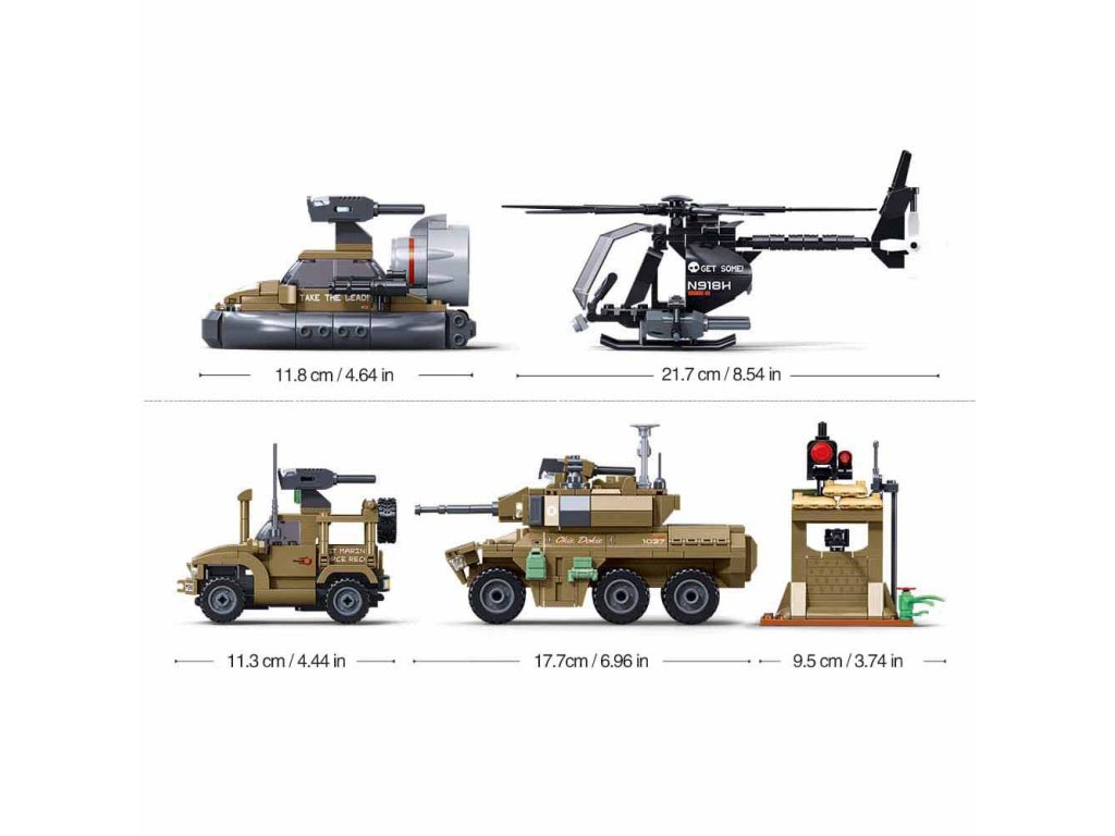 Krásná stavebnice ze série Army, se kterou zažijete hodiny zábavy. Inovativní stavebnice Sluban je možno kombinovat s podobnými stavebnicemi mnoha dalších významných výrobců. Jsou vyráběny z kvalitního, nezávadného a odolného ABS plastu. Každá stavebnice je opatřena návodem k sestavení a balena v pestře potištěné papírové krabičce. Hlavní vlastnosti: 744 dílků a 5 figurekinovativní figurky s otáčivými i výkyvnými částmi tělkompatibilní se stavebnicemi dalších výrobcůSizing info