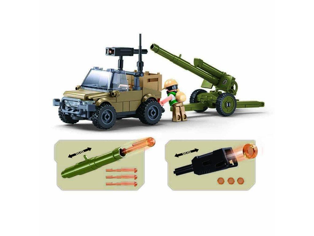 Potěšte své děti dárkem, který jim udělá radost a zároveň rozvíjí jejich kreativitu a technické dovednosti. Pro všechny, kdo se zajímají o válku a válečná vozidla, je tady armádní houfnice IFR D30S. Inovativní stavebnice Sluban je možno kombinovat s podobnými stavebnicemi mnoha dalších významných výrobců. Jsou vyráběny z kvalitního, nezávadného a odolného ABS plastu. Každá stavebnice je opatřena návodem k sestavení a balena v pestře potištěné papírové krabičce. Hlavní vlastnosti: 138 dílků, 1 figurkainovativní figurky s otáčivými i výkyvnými částmi tělkompatibilní se stavebnicemi dalších výrobcůSizing info