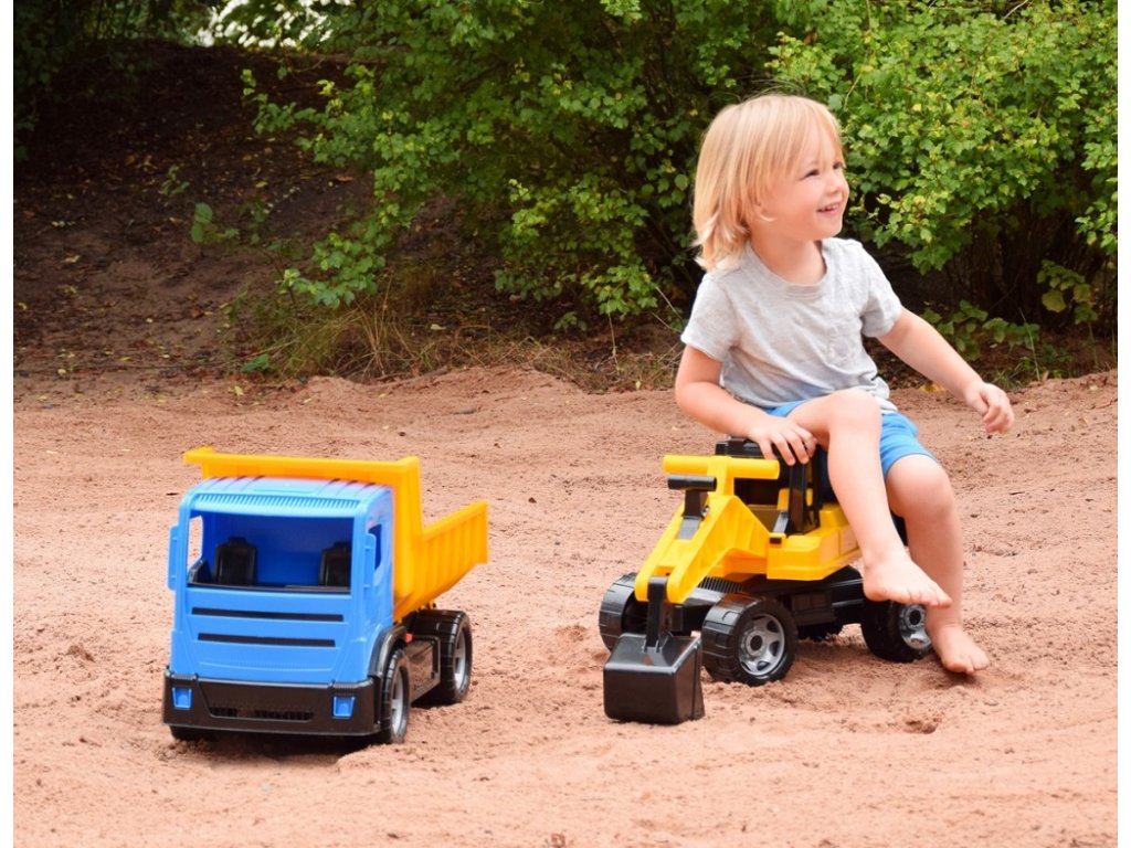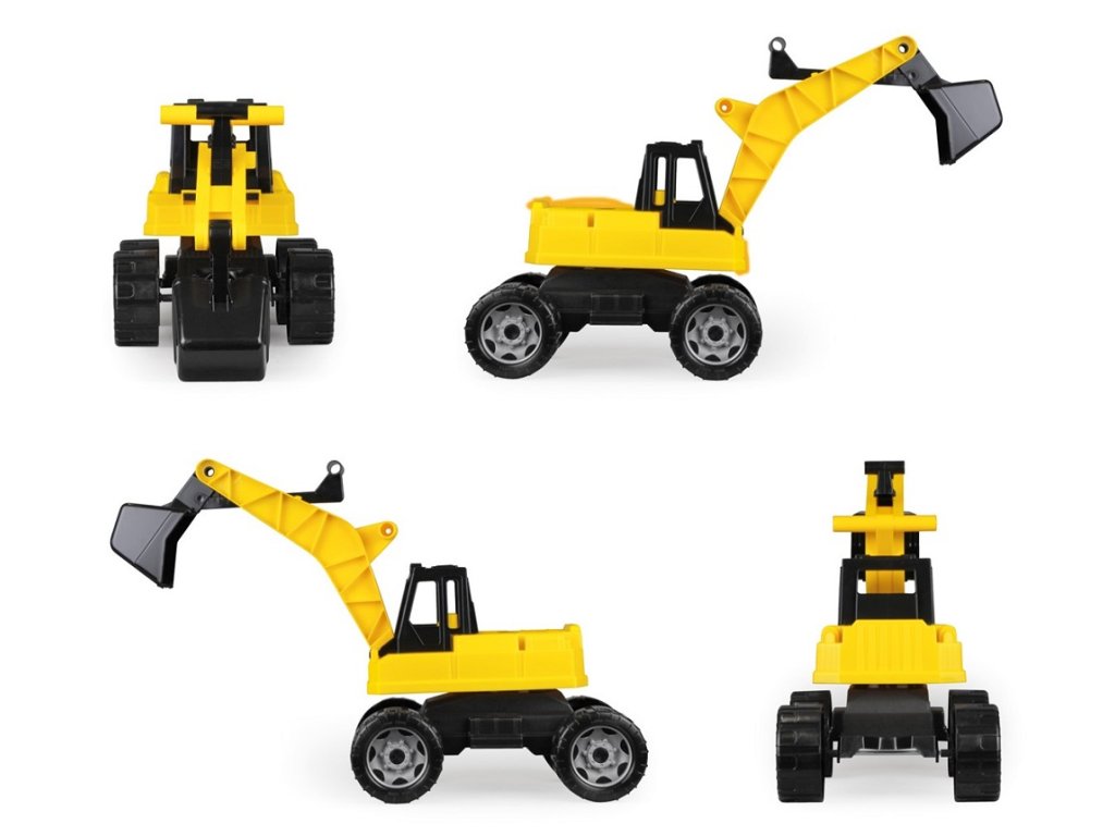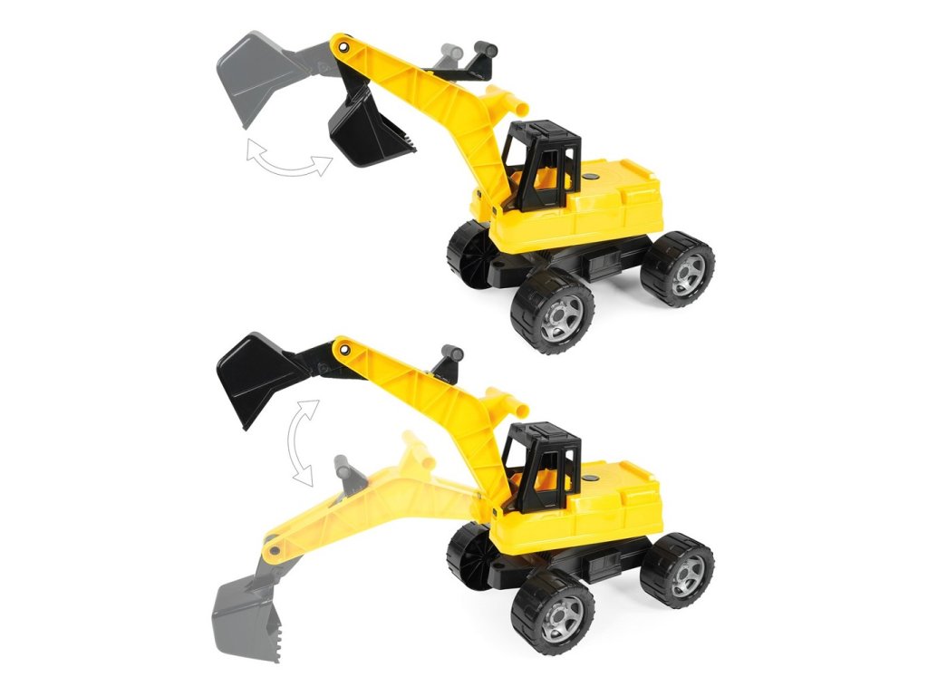 Robustní dětský bagr, na který se děti mohou bez obav posadit, s pohodlným ovládáním lžíce pomocí táhel na rameni. Maximální nosnost lžíce je 25 kg. Horní část bagru je otočná o 360°, což umožňuje realistickou manipulaci. Hračka je určena pro hraní doma i venku, zejména na písku, a je dodávána v pestrobarevné krabici s průhledem. Hlavní vlastnosti: snadno ovladatelná lžíceotáčivé tělo o 360°nosnost 25 kgrobustní a odolná plastová konstrukceSizing info