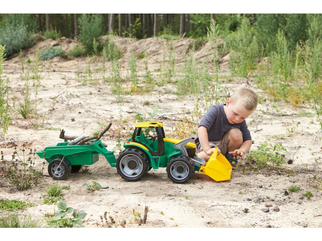 Kvalitně zpracovaný traktor s nakládací lžíci a přívěsem byl navrhnut a vyroben tak, aby odpovídal požadovanému modernímu vzhledu, funkčnosti, odolnosti, kvalitnímu zpracování, maximální hrací hodnotě. Hlavní vlastnosti: splňuje požadavky EU na bezpečnost hračekvyrobeno z kvalitního, odolného plastupodporuje kreativitu a představivostSizing info