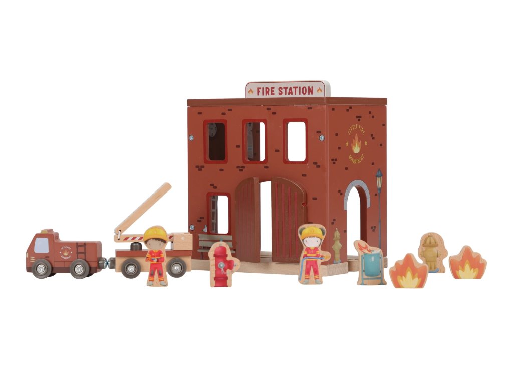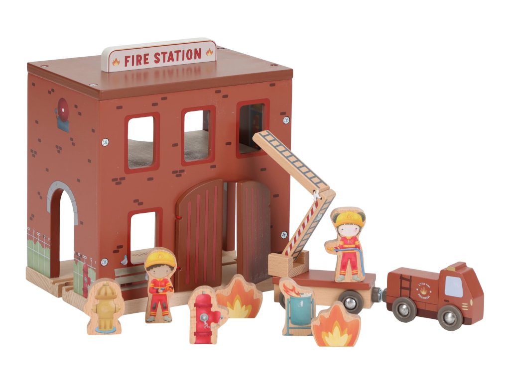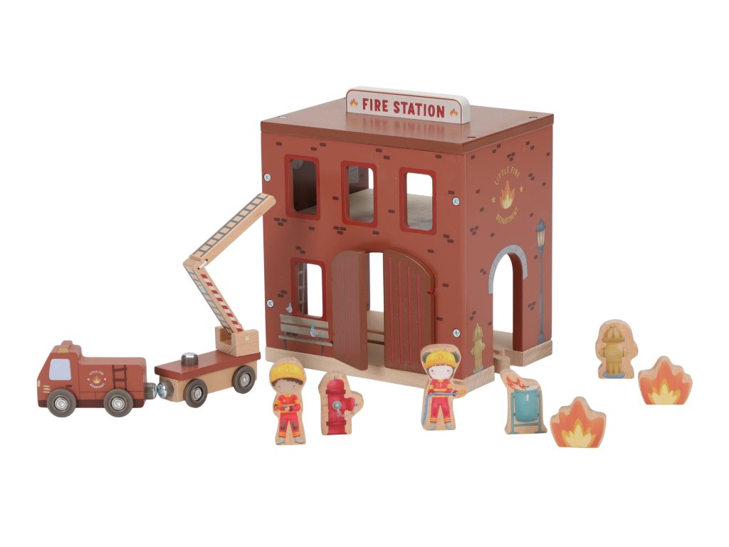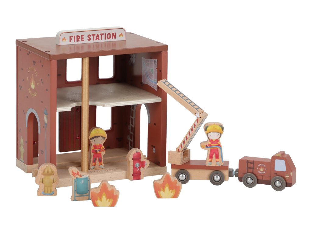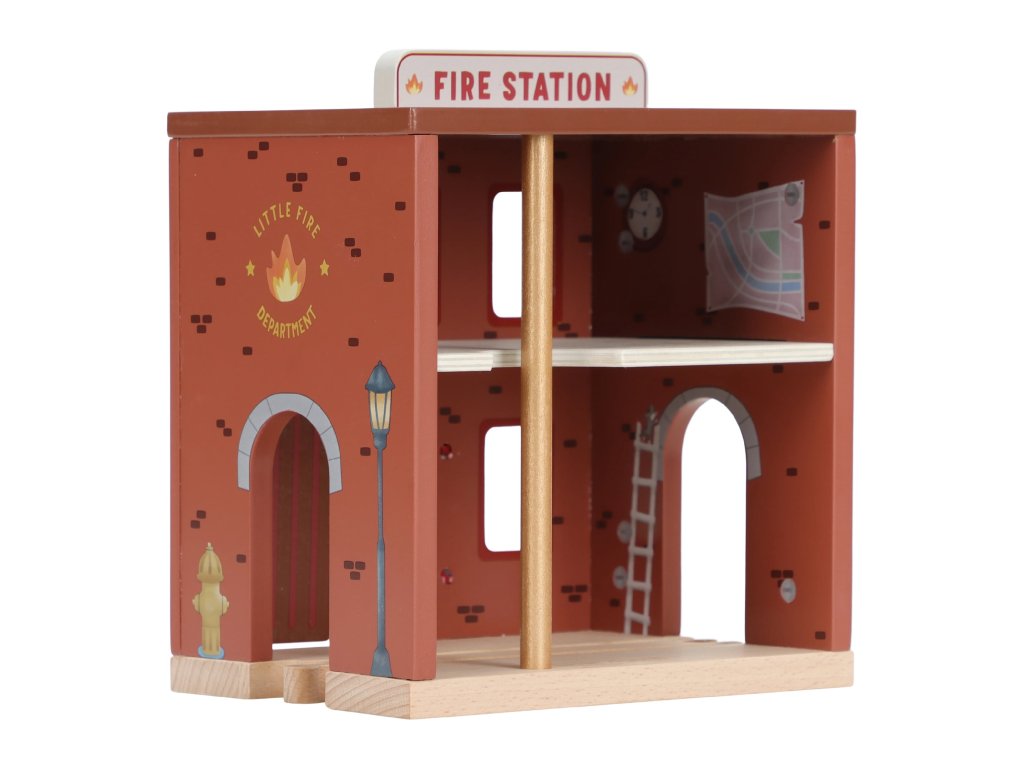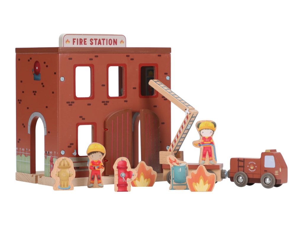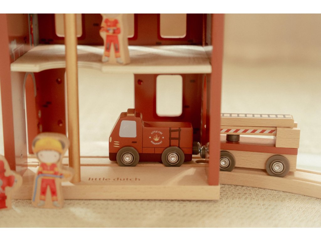 Poplach! Siréna houká a hasiči vyráží do akce! Tato dřevěná hasičská stanice nabízí vše potřebné pro napínavé záchranné mise. Otevři dveře, sjeď po tyči dolů a naskoč do hasičského vozu – někde hoří a je potřeba pomoci! Součástí sady jsou figurky hasičů, oheň a hořící popelnice pro realistické hraní. Dveře stanice lze otevřít, aby mohl zásah začít co nejrychleji. Hasičská stanice je kompatibilní s dřevěnou vláčkodráhou Little Dutch, což umožňuje ještě více zábavy a kombinací. Hračka je součástí kolekce vysoce kvalitních dřevěných hraček Little Dutch, navržených s důrazem na bezpečnost a originální design. Vyrobeno z odolného FSC certifikovaného dřeva. Rozměry: 19 x 18,2 x 13,5 cm Vhodné pro děti od 2 let.Doplňkové parametry