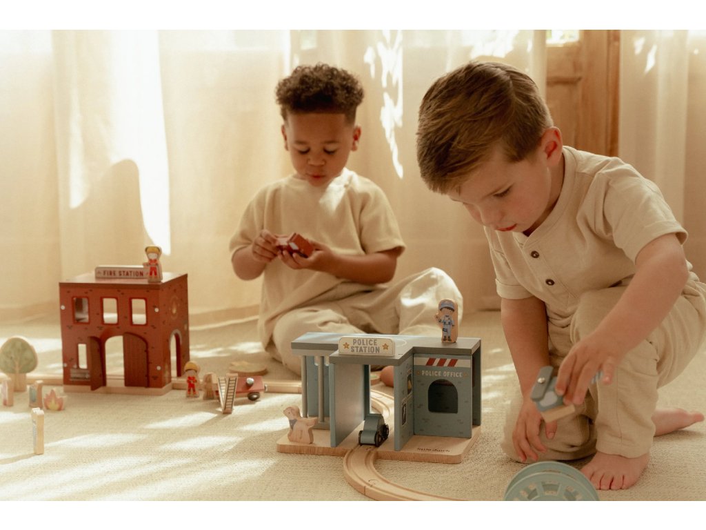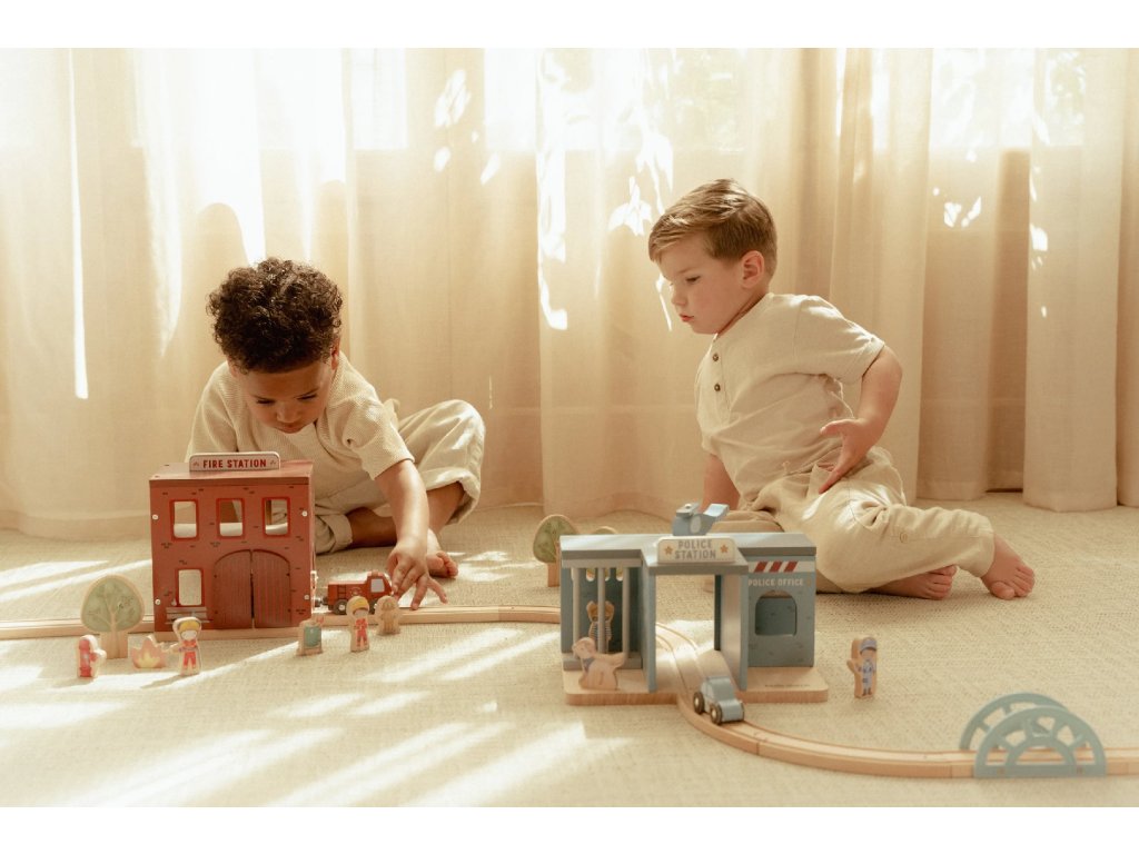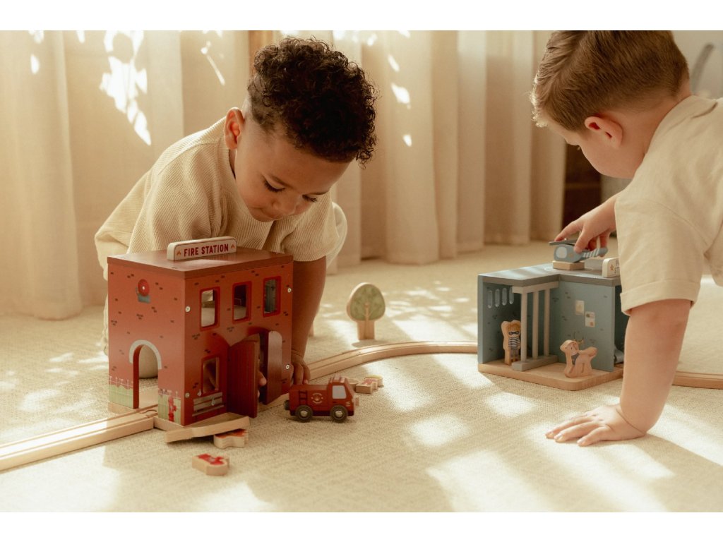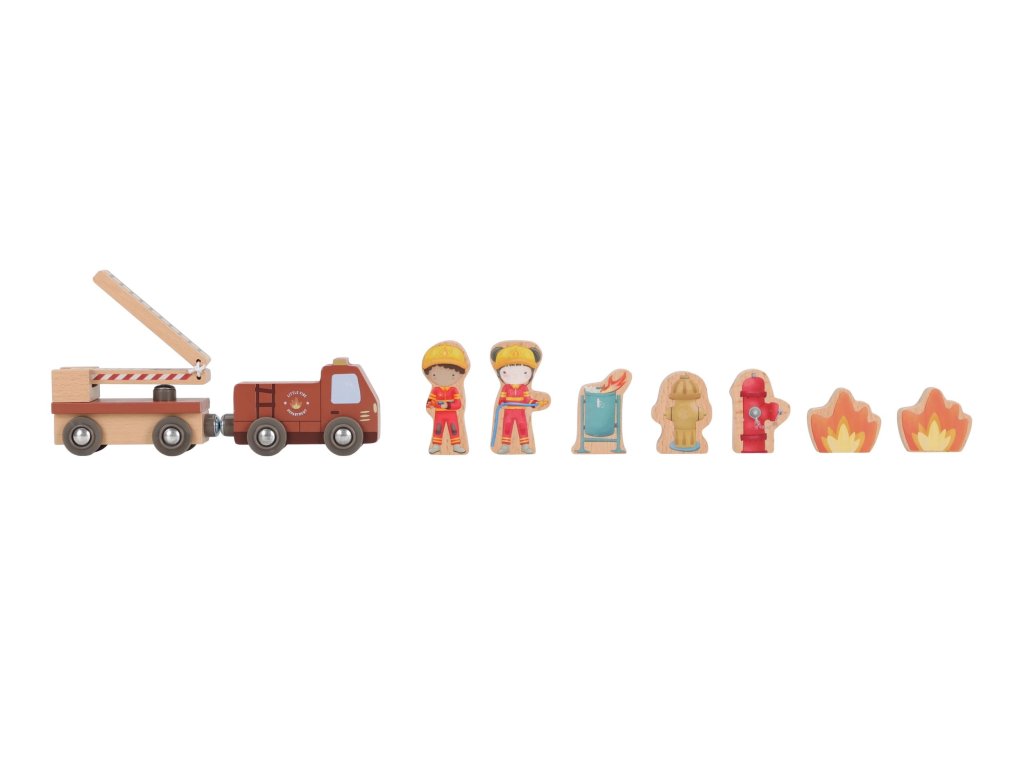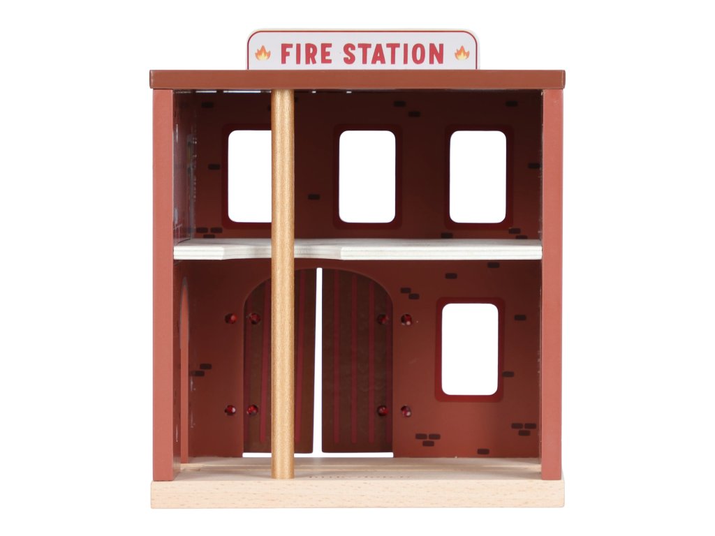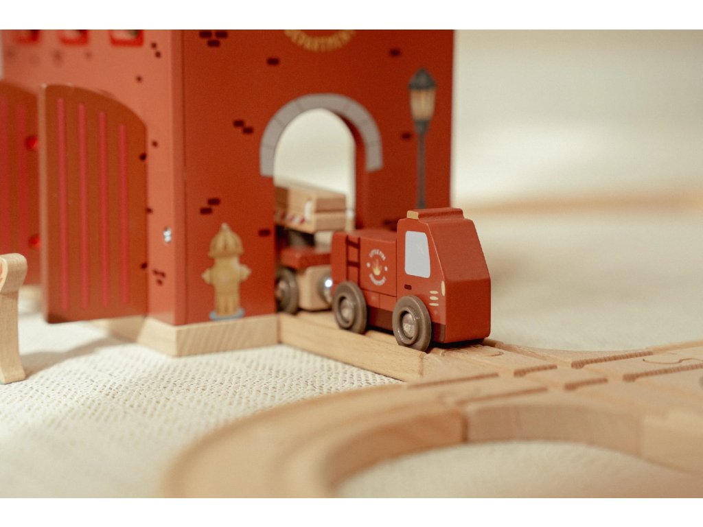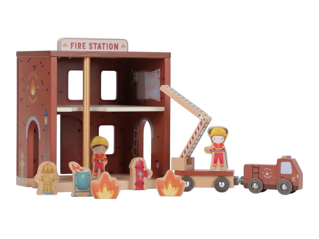 Poplach! Siréna houká a hasiči vyráží do akce! Tato dřevěná hasičská stanice nabízí vše potřebné pro napínavé záchranné mise. Otevři dveře, sjeď po tyči dolů a naskoč do hasičského vozu – někde hoří a je potřeba pomoci! Součástí sady jsou figurky hasičů, oheň a hořící popelnice pro realistické hraní. Dveře stanice lze otevřít, aby mohl zásah začít co nejrychleji. Hasičská stanice je kompatibilní s dřevěnou vláčkodráhou Little Dutch, což umožňuje ještě více zábavy a kombinací. Hračka je součástí kolekce vysoce kvalitních dřevěných hraček Little Dutch, navržených s důrazem na bezpečnost a originální design. Vyrobeno z odolného FSC certifikovaného dřeva. Rozměry: 19 x 18,2 x 13,5 cm Vhodné pro děti od 2 let.Doplňkové parametry