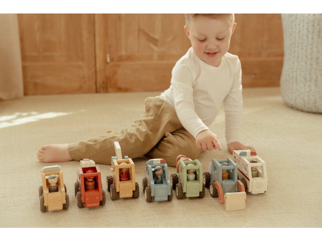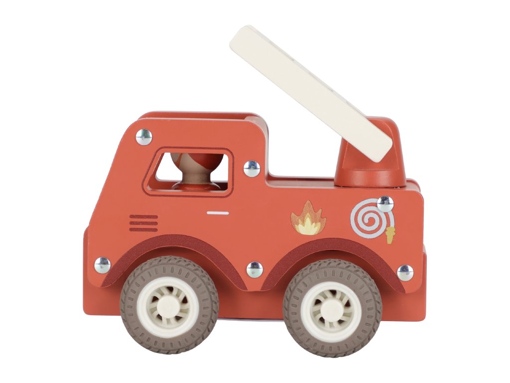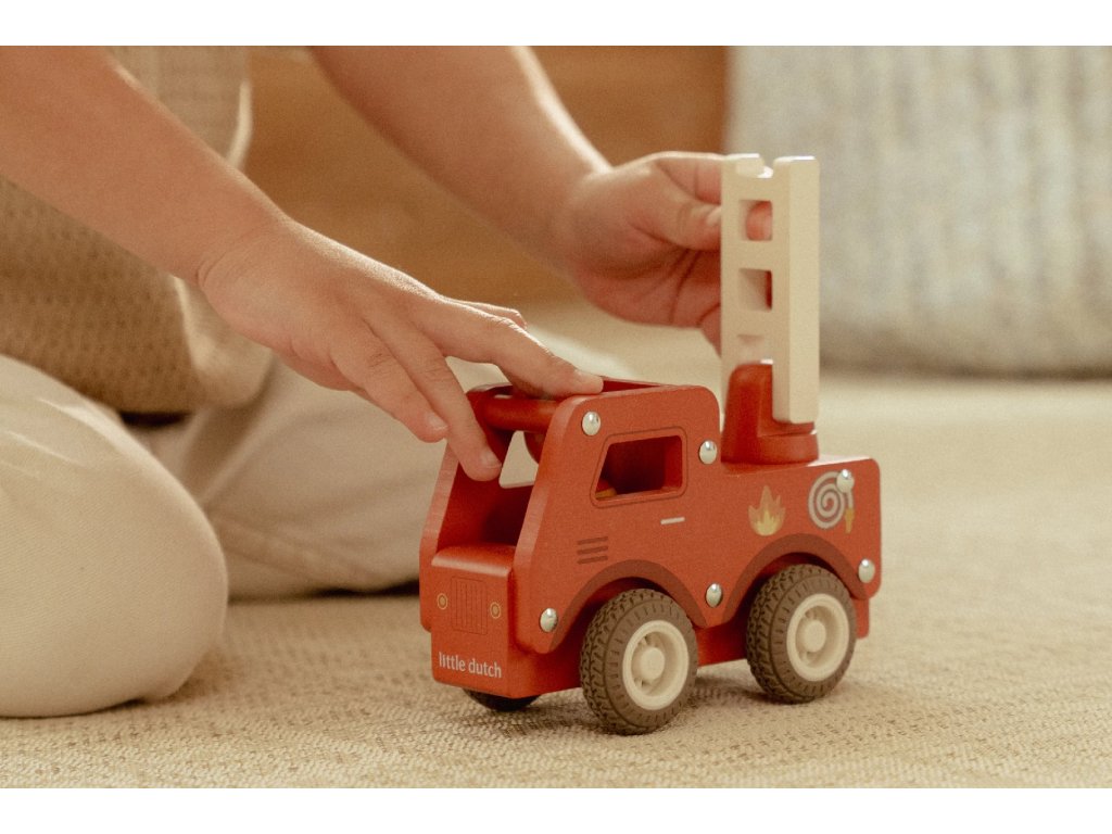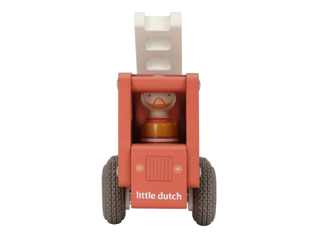 S tímto dřevěným hasičským autem budete vždy připraveni vyrazit do akce! Vozidlo je vybaveno výsuvným žebříkem a odvážným hasičem v podobě dřevěné figurky. Díky robustní konstrukci a gumovým pneumatikám je jízda plynulá a bezpečná na každém povrchu. Otevřený design umožňuje dětem snadné uchopení a tlačení, a proto je hasičské auto ideální pro malé ruce i velkou fantazii. Zachraňte zvířátka ze stromů, uhaste požár a ochraňujte své město! Hračka je součástí kolekce vysoce kvalitních dřevěných hraček Little Dutch, navržených s důrazem na bezpečnost a originální design. Vyrobeno z odolného FSC certifikovaného dřeva. Rozměry: 14.5 x 7,3 x 12 cm Vhodné pro děti od 18 měsíců.Doplňkové parametry