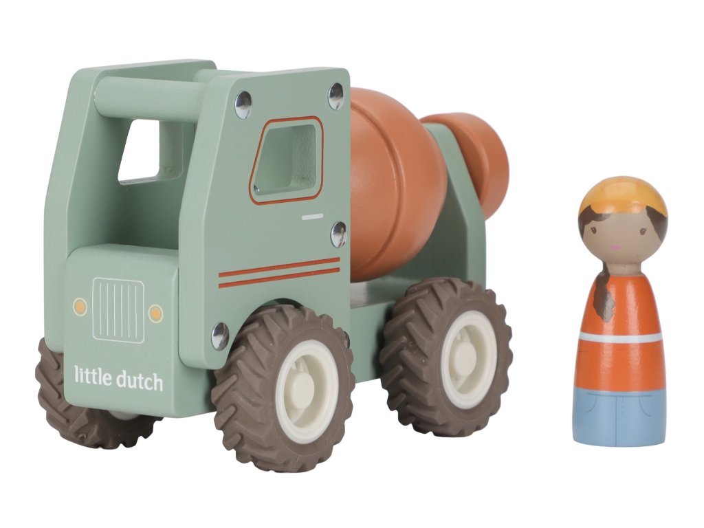 Míchat a stavět! Tento dřevěný míchač betonu je připraven na práci na stavbě. Při jízdě se buben míchačky otáčí, takže hra vypadá jako skutečná. Robustní náklaďák s gumovými pneumatikami zajišťuje hladkou a tichou jízdu. Součástí hračky je dřevěná figurka stavbyvedoucího, která dodá hře ještě více zábavy a realismu. Míchačku můžete kombinovat s dalšími stavebními vozidly – například s nakladačem, autojeřábem nebo sklápěčkou – pro kompletní stavební dobrodružství. Hračka je součástí kolekce vysoce kvalitních dřevěných hraček Little Dutch, navržených s důrazem na bezpečnost a originální design. Vyrobeno z odolného FSC certifikovaného dřeva. Rozměry: 15,3 x 7,5 x 10 cm Vhodné pro děti od 18 měsíců.Doplňkové parametry