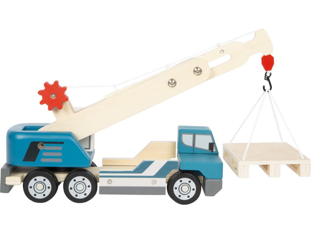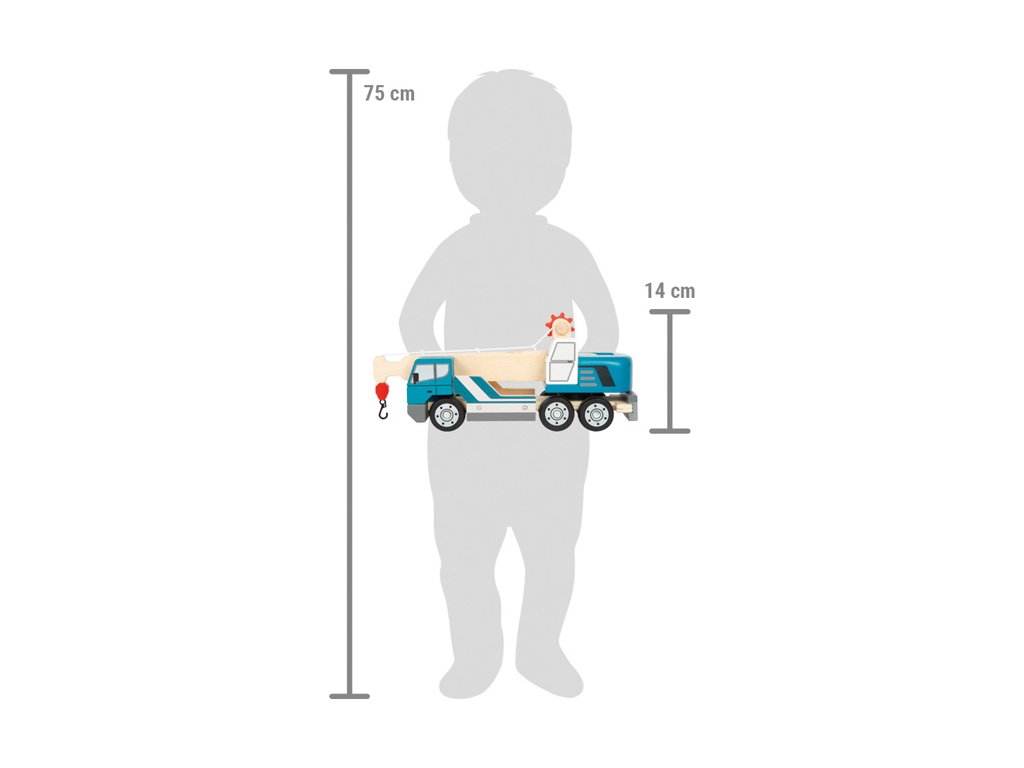Perfektní dopravní prostředek pro mladé stavební dělníky! Zvedání a přemísťování břemen v dětském pokoji? Ano, je to možné! Umístěte náklad na paletku nebo přímo na jeřáb a přepravte ho z bodu A do bodu B. Paleta je součástí balení. Stroj vhodný pro malé stavební dělníky. Díky zaobleným hranám a okenním otvorům jej mohou malé dětské ručičky snadno uchopit a pohybovat s ním. Pogumované pneumatiky navíc zajišťují tichý pohyb. Tento nákladní jeřáb nesmí chybět v žádném vozovém parku! Hlavní vlastnosti: otáčení jeřábu o 360 stupňůrozvíjí jemnou motorikupodporuje koordinaci ruka-okomalá dřevěná paleta součástí balenímechanická tažná kladka s háčkempogumovaná kolaSizing info