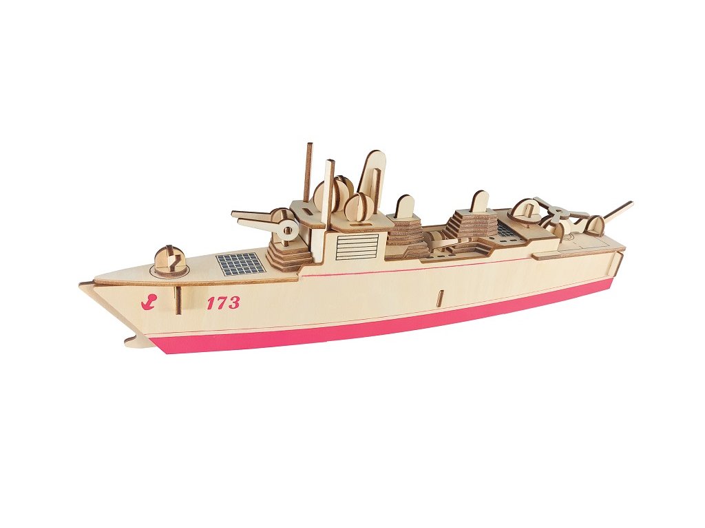 Tato série dřevěných hraček 3D puzzlí je určena především pro pány chlapce a jejich tatínky, kteří se rádi se svými dětmi vracejí do svého dětství. Jedná se spíše o středně těžké 3D puzzle dřevěných plachetnic, historických korábů, ale také moderních luxusních jachet nebo ponorek, bojových křižníků či letadlových lodí, včetně letadel, to vše z krásného dřeva, ať už přírodního nebo barevného. Historické lodě jsou navíc doplněny přiloženými plachtami a lany, které dokreslují dokonalost dřevěné hračky. Dřevěné 3D puzzle nejsou určeny pouze pro vystavení na polici, ale protože jsou jejich díly moudře spojeny, mohou být použity jako rovnocenné dřevěné hračky pro každodenní hraní. Jsou vyrobeny ze 3 nebo 5 mm silné kvalitní překližky a jsou dodávány v nesloženém tvaru, baleny ve fólii. Jednotlivé díly z dřevěné překližky jednoduše vymáčknete a podle přiloženého návodu skládáte krásné plnohodnotné dřevěné hračky. Dětem se tak rozvíjí jejich myšlení, jemná motorika a představivost. Dřevěné 3D Puzzle nemusíte lepit lepidlem, poté je lze kdykoli rozložit a znovu složit. Doporučujeme si ponechat návod na stavbu. Přírodní dřevěné 3D puzzle si mohou děti i samy vybarvit podle své fantazie. Barevné dřevěné 3D puzzle jsou opatřeny kvalitním potiskem. Jsou určeny dětem od 3 let a splňují všechny normy EU. Upozornění: Není vhodné pro děti do 3 let, protože obsahuje malé součásti – hrozí nebezpečí udušení. Balící materiál není hračka. Hlavní vlastnosti: přírodní dřevěné 3D puzzlerozvíjí jemnou motoriku a představivostvhodné od 8 letjednoduchá obtížnostSizing info