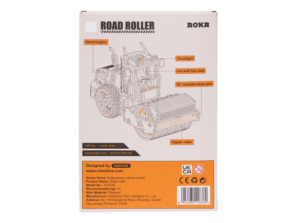 RoboTime 3D dřevěná mechanická skládačka Silniční válec