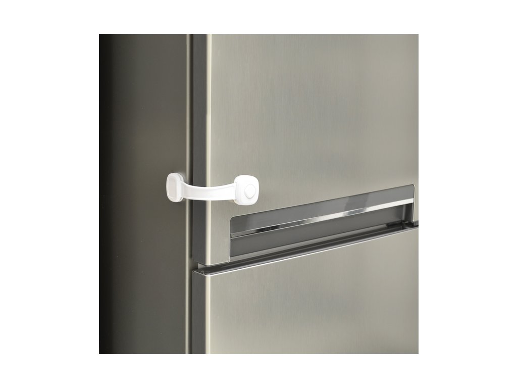 Samolepicí pojistka brání dětem dostat se do skříněk s dvířky, do lednice apod. Pojistku snadno instalujete na dveře a bok skříňky bez nutnosti vrtání. Dospělý dokáže pojistku snadno otevřít díky "neviditelnému" způsobu otevírání - zámek pojistky je vyroben z pružného materiálu a otevírá se současným zmáčknutím jednou rukou z horní a spodní strany zámku. Velké tlačítko na přední straně zámku není funkční, pouze slouží k odlákání pozornosti dítěte, které se bude snažit tlačítko mačkat, ale zámek s jeho pomocí otevřít nelze. Když děti vyrostou, pojistku snadno odstraníte. Vhodné pro použití od 6 měsíců.Doplňkové parametry