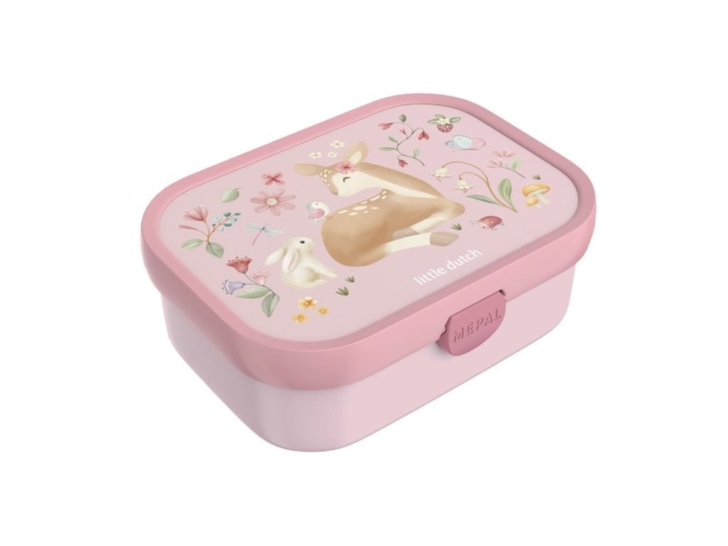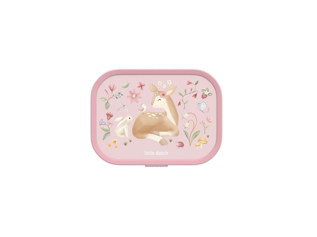 Praktický svačinový box nabízí možnost rozdělení na tři přihrádky pro oddělení jednotlivých částí uložené svačinky. Součástí boxu je i malá vidlička, která je ideální pro napichování kousků ovoce či zeleniny. Zacvakávací uzávěr je zárukou bezpečného uzavření obsahu boxu. Box je součástí designové řady hraček a doplňků Little Dutch Fairy Garden, inspirované životem na zahradě. Materiál: PP, ABS Rozměry: 17,8 x 13,2 x 6 cm Objem: 750 ml Vhodné do myčky.Doplňkové parametry