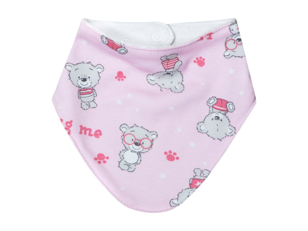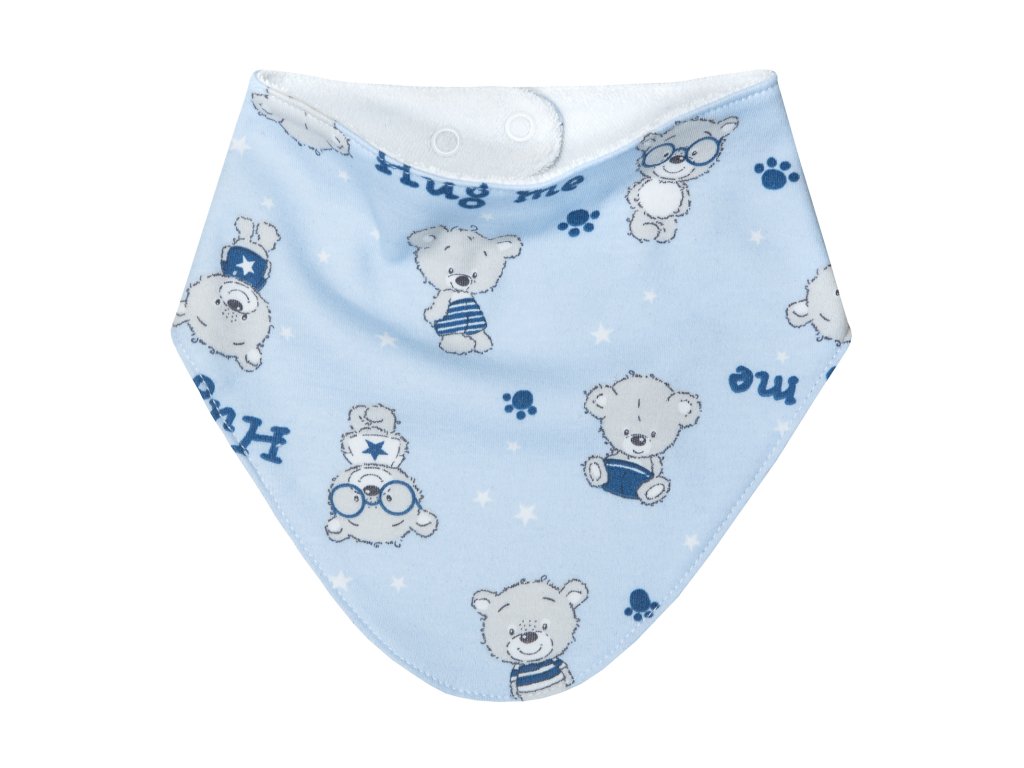 Popis: Kojenecký slinták je určený zejména při růstu prvních zoubků našich malých ratolestí. Miminko většinou nadměrně slintá a tím si namáčí veškeré oblečení pod ústy. Slinták tomu umí zabránit. Tedy měníte pouze slinták a ne kompletní oblečení, šetříte si tak práci při praní a čas při převlékání. Svým střihem se jedná o dokonalou pomůcku pro maminky při růstu zoubků a nebo nadměrném slinění. Slinták má dvojitý materiál pro perfektní savost. Zapíná se na dva druky - lze podle potřeby povolit a nebo utáhnout - roste s dítětem. Slintáček nedráždí dětskou pokožku. Slinták lze využít i jako menší bryndák a dokonce i jako šátek na krk. Tento slinták je součástí kolekce Teddy bears. Použití: - Při růstu zoubků. - Při nadměrném slinění obecně. - Při odříhnutí, ale i krmení. Určení: - Pro děti od cca 4 měsíců do cca 3 let. Materiál: - Vrchní: 100% bavlna Jersey, atestovaný materiál - Spodní: 100% bavlna - jemně tkané froté. Rozměry: - (výška x šířka) 20 x 20 cm. - Obvod okolo krku: univerzál. Údržba: - TIP: když hned po krmení použijete na zaprání ŽLUČOVÉ mýdlo bude slinták stále jako nový. - Praní: ANO, max. 40°C. - Sušička: ANO, ideálně s programem za studena. - Po vyprání je třeba slinták rozklepnout resp. jemně natáhnout do všech stran jako každý výrobek ze 100% bavlny. Záruka kvality: - Kojenecký slinták je navržen, vyroben a zabalen na území Česka. - Jedná se tedy o 100% český výrobek té nejvyšší kvality. - Značkový výrobek ESITO®. Kvalitní český výrobek. Vyrobeno s péčí a láskou k dětem v podhůří Orlických hor.Doplňkové parametry