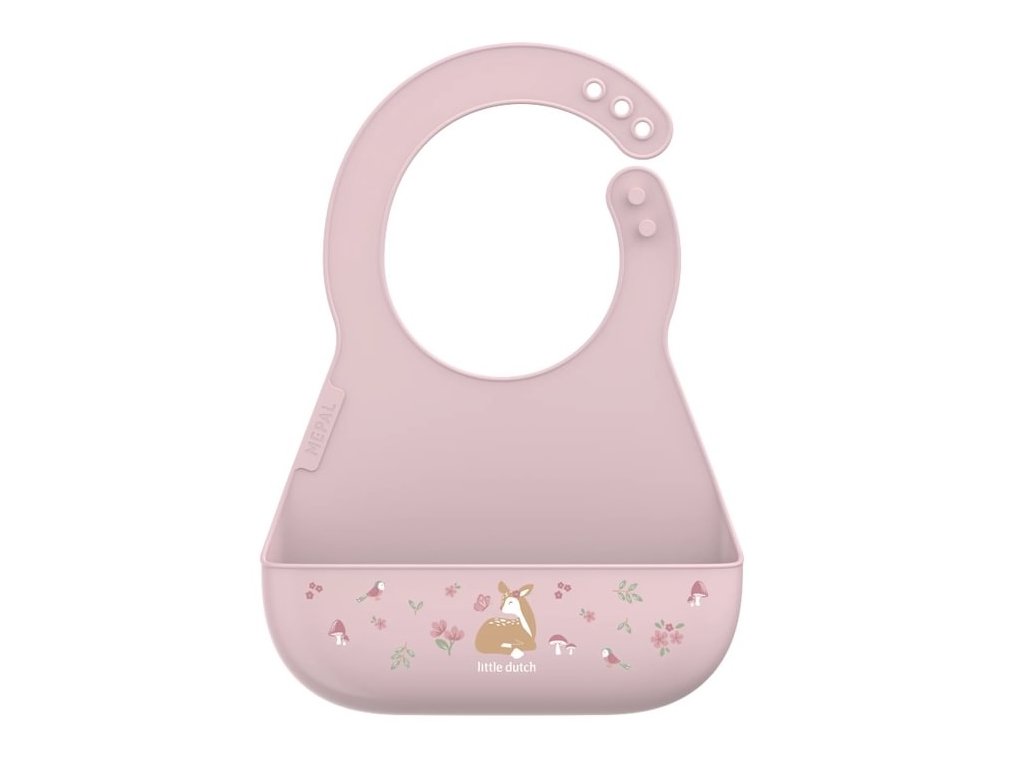 Bryndák z jemného, pružného silikonu s krásným potiskem je vybaven širokou kapsou pro zachycení drobečků i kapek. Dokonale ochrání oblečení dítěte již od prvních pokusů o samostatné stolování. Zapínání za krkem umožňuje snadno upravit velikost kolem krku. Bryndák je součástí designové kolekce hraček a doplňků pro děti Little Dutch Fairy Garden, inspirované životem na zahradě. Rozměry: 30 x 21 x 3,6 cm Složení: silikon Bryndák je omyvatelný a je možné jej mýt i v myčce.Doplňkové parametry