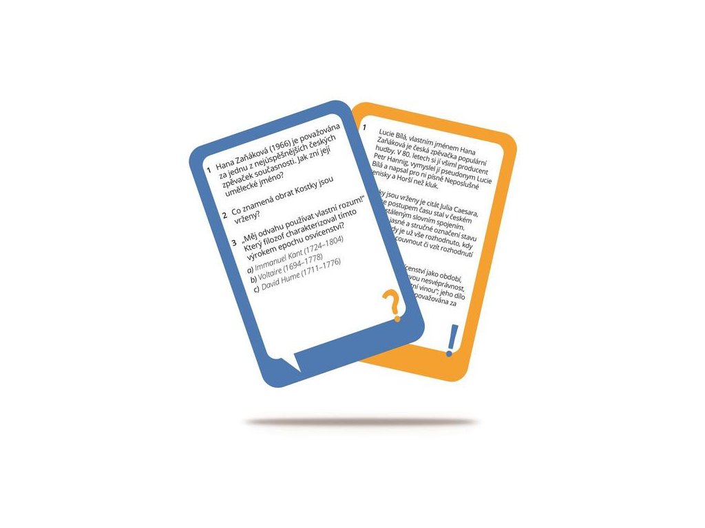 Umí surikata štěkat? Jsou vaše znalosti vesmíru nekonečné stejně jako on? A proč plameňáci postávají na jedné noze? Rozšiřte si obzory zábavnou vědomostní hrou, kterou díky kapesnímu formátu můžete vzít, kamkoli vás napadne! K dispozici budete mít 159 otázek a odpovědí na téma příroda, vesmír i samotné lidstvo a jeho vývoj. Na každé kartě vás čeká trojice otázek, pro odpovědi stačí otočit. Zjistěte, kdo z party toho ví o světě víc a zabavte se jak na cestách, tak třeba při přátelském posezení. Hlavní vlastnosti: zaměstná mysl vašich dětí na pěkně dlouhokromě zábavy Vás čeká spousta nových informací 53 oboustranných karet 159 otázekdržitel certifikátu Bezpečná a kvalitní hračka Certifikát „Bezpečná a kvalitní hračka“ je vydáván největší zkušební a certifikační organizací v České republice, Technickým a zkušebním ústavem stavebním Praha, s.p. (TZÚS Praha, s.p.), která je členem řady národních i mezinárodních organizací a aktivně se účastní procesu tvorby technických předpisů a norem. Touto značkou se mohou pyšnit produkty splňující přísné podmínky na kvalitu provedení, bezpečnost a vhodnost použití i snadnost údržby. V procesu certifikace se zohledňuje zpětná vazba od prodejců i zákazníků, zejména ale výrobní proces, který musí zaručovat stálou úroveň produkce i organizačních a kontrolních mechanismů. Podmínkou vydání značky „Bezpečná a kvalitní hračka“ je každoroční namátkové podrobení sériového výrobku sérií ověřovacích zkoušek, díky kterému si zákazníci mohou být jisti oprávněností a aktuálností ocenění.Sizing info