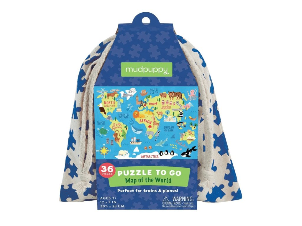 Mudpuppy Puzzle Mapa světa v látkovém pytlíku 36 dílků