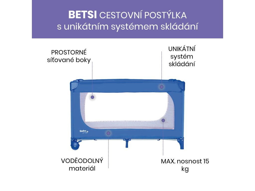 Máme pro vás řešení - cestovní postýlku BETSI s unikátním velmi rychlým a jednoduchým systémem skládání.