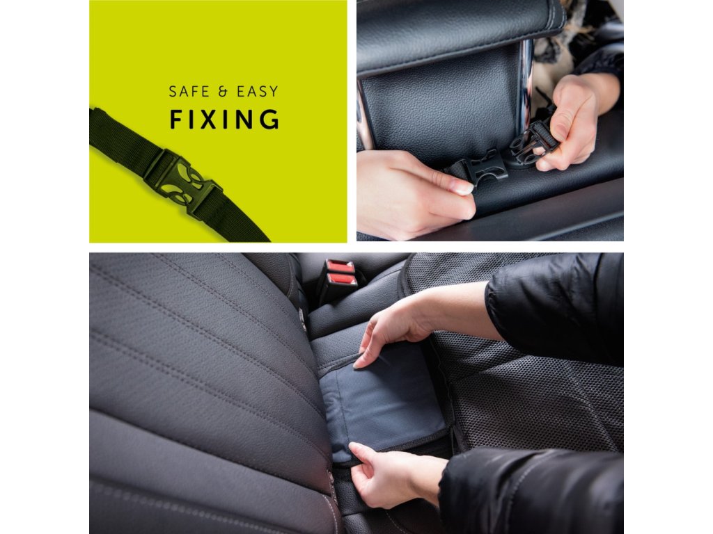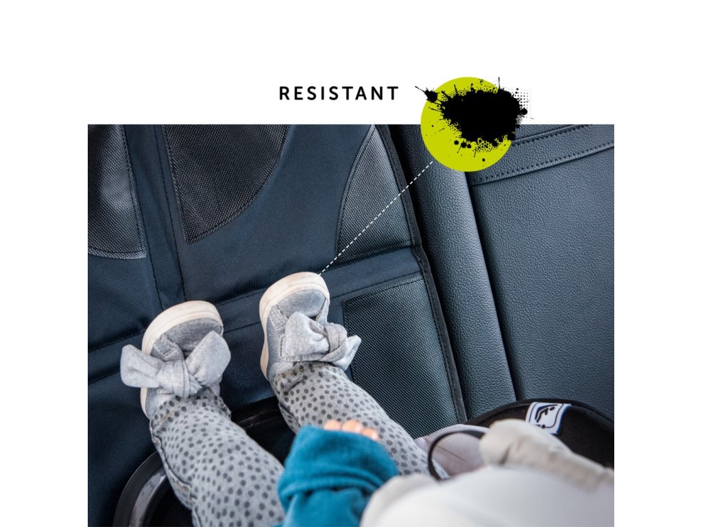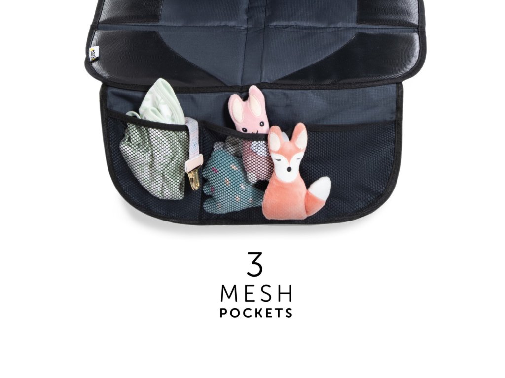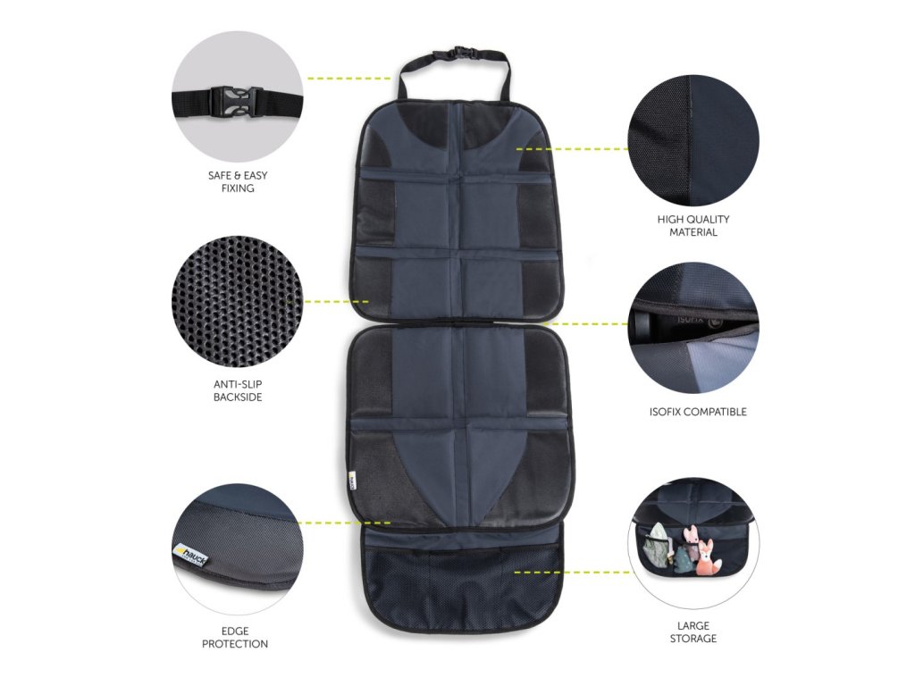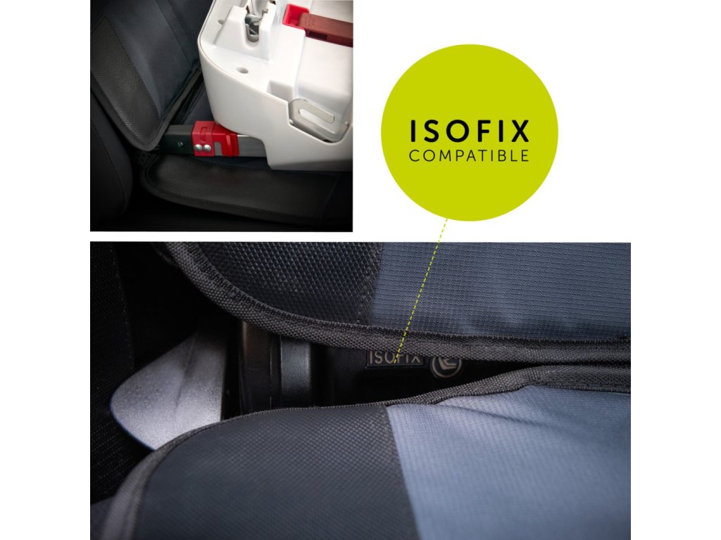Podložka // Perfektní ochrana potahů autosedadla proti otlačeninám a škrábancům, které zapříčiňují dětské autosedačky. Součástí jsou otvory na ISOFIX a malé přední kapsy.