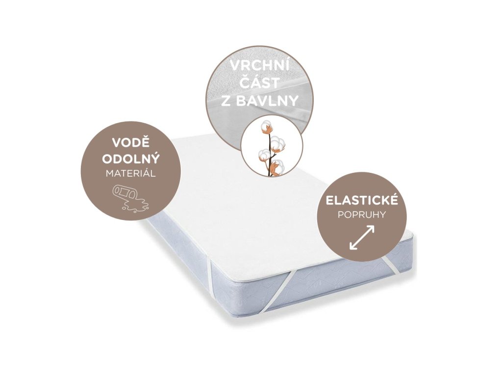 Spodní materiál chrániče zabraňuje vsáknutí tekutin do matrace, zatímco vrchní směs z bavlny udržuje matraci svěží a čistou díky své prodyšnosti.
