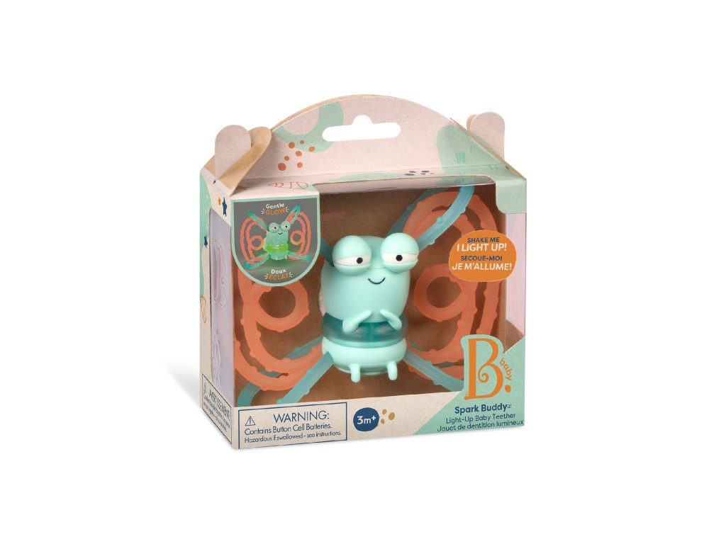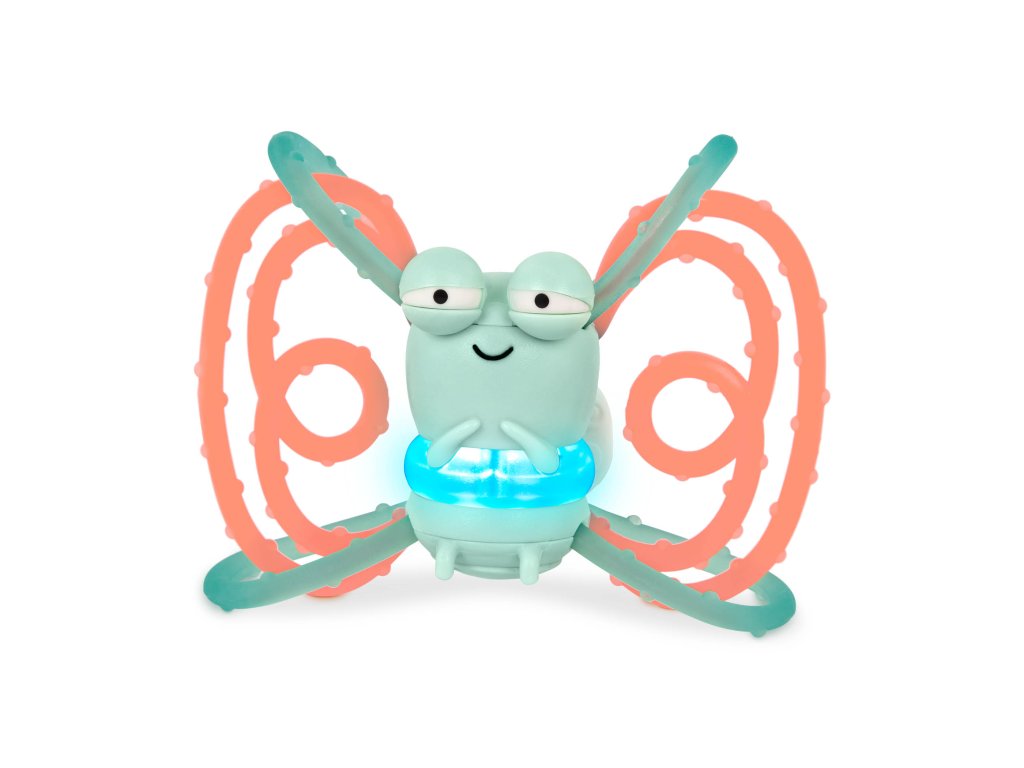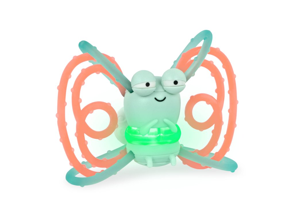 Jemně svítící kousátko v podobě rošťácké světlušky je ideálním parťákem pro první objevování i uklidnění citlivých dásní. Kousátko se rozsvítí po jemném zatřesení. Texturované kroužky jsou bezpečné pro kousání, snadno se uchopí drobnými ručičkami a lákají k dalšímu zkoumání. Vyměnitelné baterie 3x AG9 (LR45) jsou součástí. Rozměry: 10,5 × 4,6 × 9,9 cm Vhodné pro děti od 3 měsíců.Doplňkové parametry