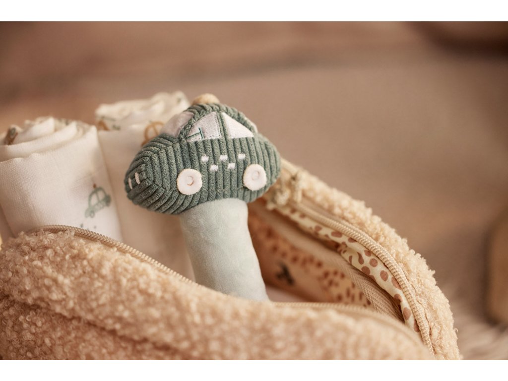 Chrastítko v podobě autíčka z měkkého textilního materiálu má tvar pro snadné uchopení a při pohybu jemně chrastí. Rozměry: 13 x 6 x 3 cm Složení: 100% polyester Možno prát v ruce. Vhodné pro děti od narození.Doplňkové parametry
