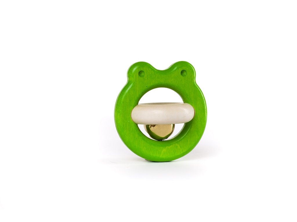 Chrastítko žabka s rolničkou v zelené barvě uzpůsobené pro dětské ručičky. Rolnička jemně cinká. Hračka probouzí zvědavost a dítě si s její pomocí procvičí jemnou motoriku. U velmi malých dětí doporučujeme při hře dohled dospělé osoby. Tato hračka a obal jsou vyrobeny z přírodních zdrojů a lze je snadno recyklovat. Doporučujeme povrch hračky čistit pouze vlhkým hadříkem. Nevystavujte, prosím, tuto hračku vysokým teplotám nebo vysoké vlhkosti, dřevo se za těchto podmínek může ohýbat a deformovat. Splňuje všechny evropské bezpečnostní normy. Hlavní vlastnosti: výrobek splňuje požadavky EU na bezpečnost hračekrozvíjí motorické dovednostivhodné pro děti od 6ti měsícůSizing info