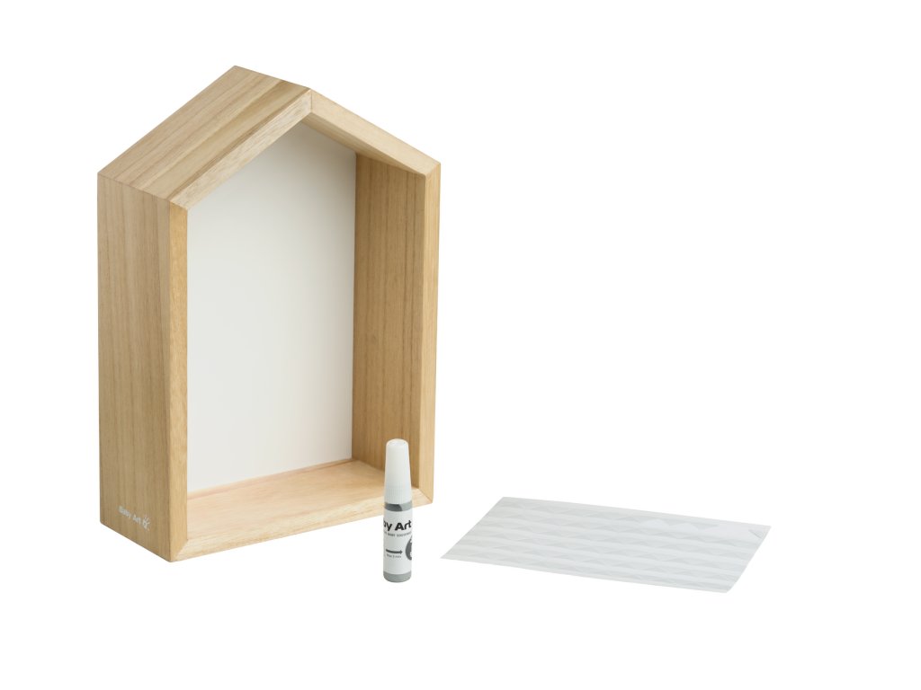 Dřevěný rámeček Baby Art Shelve House nabízí prostor pro fotografii a otisk ručičky nebo nožičky Vašeho miminka. Vyrobte si krásnou dekoraci, která vám zároveň pomůže uchovat vzpomínky na krásné období po narození vašeho dítěte. Použití dle přiloženého návodu je jednoduché, rychlé a bez nepořádku. Balení obsahuje rámeček a vše, co potřebujete k výrobě otisku. Výrobek je dermatologicky testován a je pro vaše dítě 100% zdravotně nezávadný.Doplňkové parametry