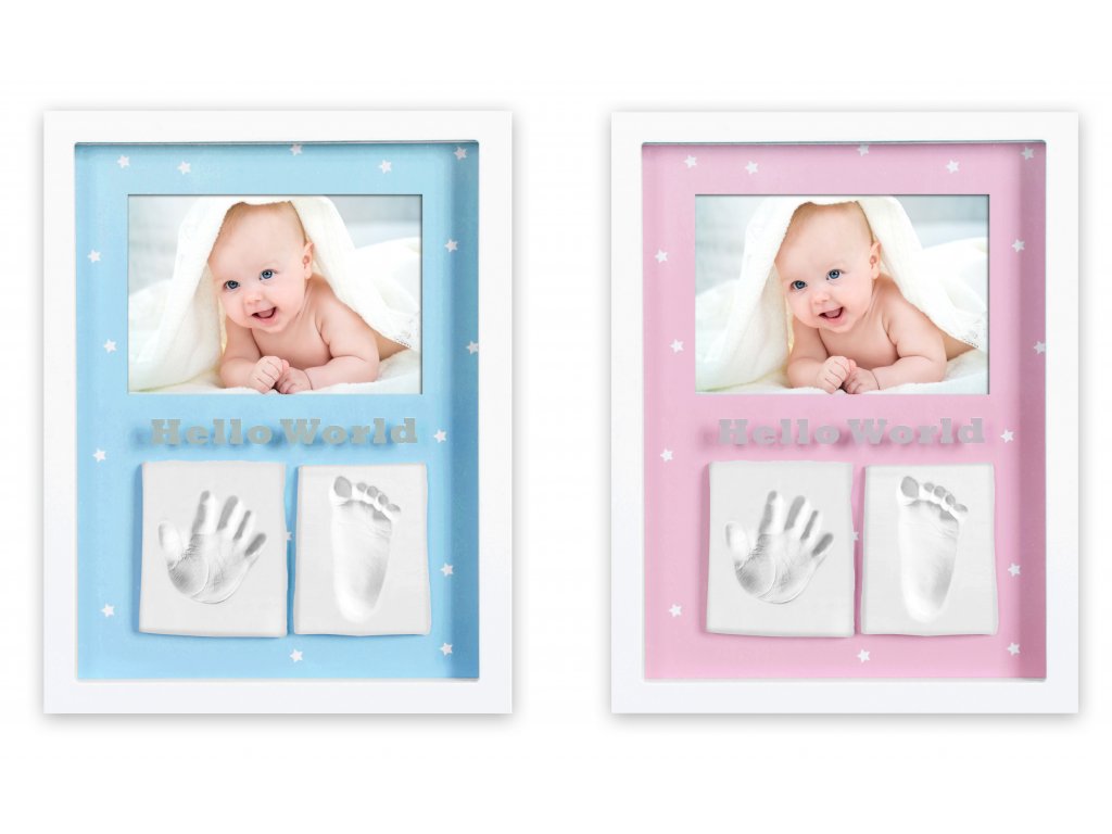 INTERBABY rámeček je foto rámeček se třemi oddělenými prostory pro jednu fotografii a dva otisky ručiček nebo nožiček Vašeho miminka. Vybrat si můžete z růžového podkladu pro holčičku nebo modrého pro chlapce - obě barvy jsou součástí balení.