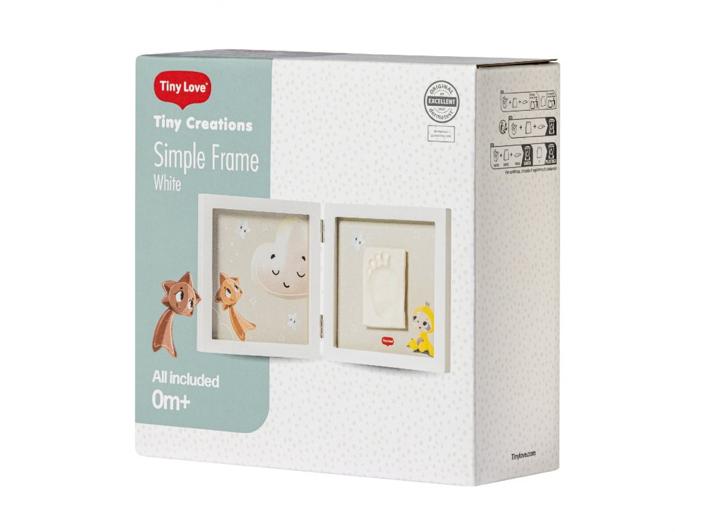 Dřevěný rámeček Tiny Creations Simple Frame nabízí dva oddělené prostory pro fotografii a otisk ručičky a nožičky Vašeho miminka. Vyrobte si krásnou dekoraci, která vám zároveň pomůže uchovat vzpomínky na krásné období po narození vašeho dítěte. Použití dle přiloženého návodu je jednoduché, rychlé a bez nepořádku. Balení obsahuje rámeček a vše, co potřebujete k výrobě otisku. Výrobek je dermatologicky testován a je pro vaše dítě 100% zdravotně nezávadný.Doplňkové parametry