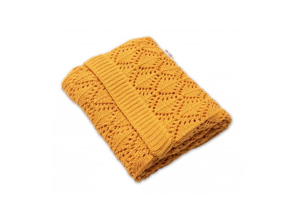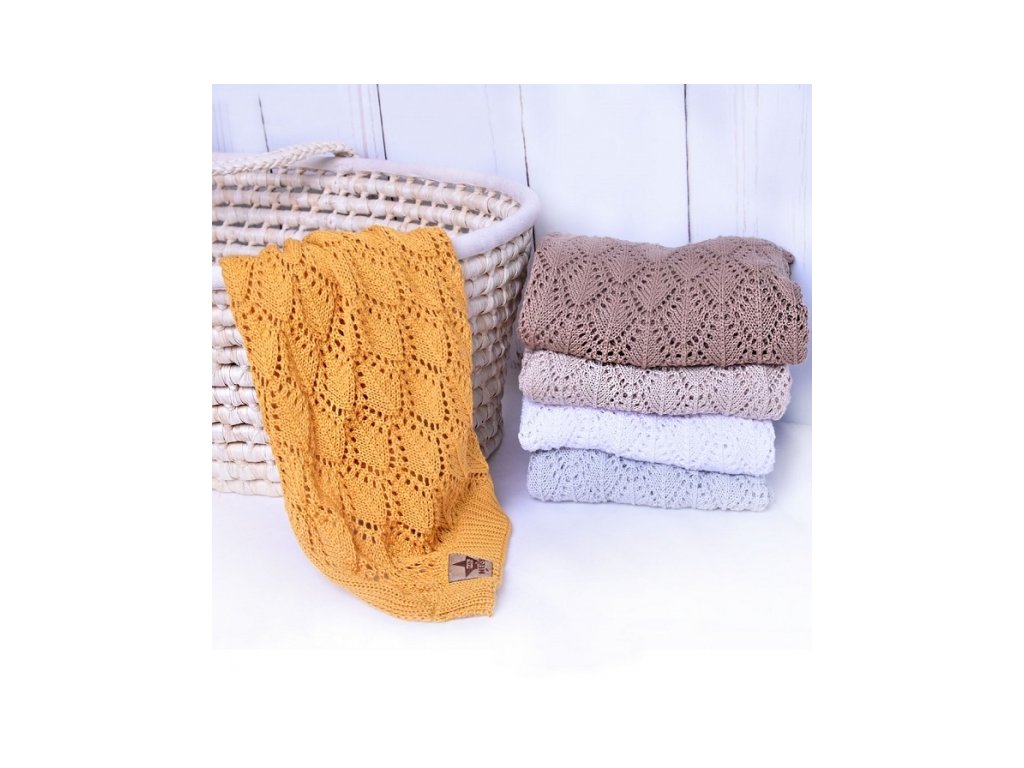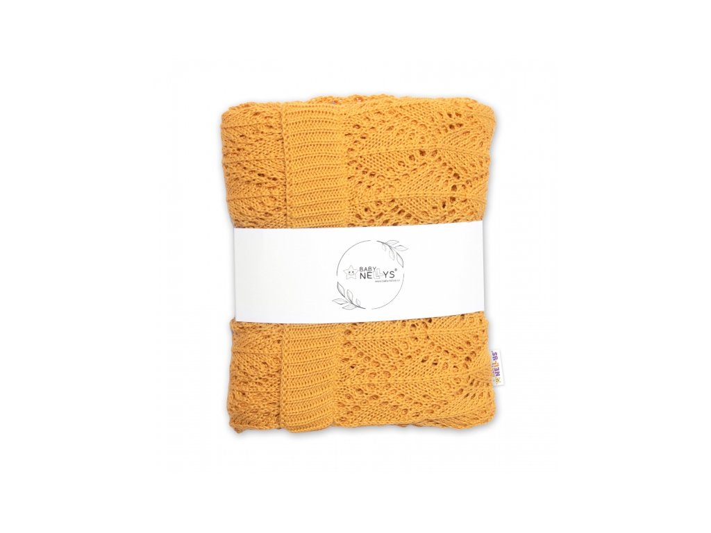 Luxusní bavlněná háčkovaná deka, dečka. ažurková LOVE, 75x95cm - hořčicová