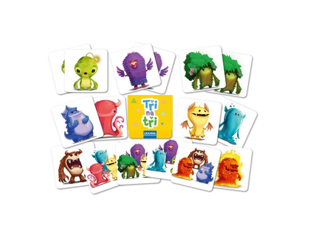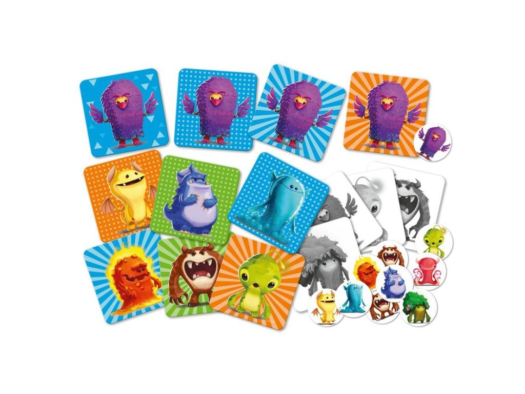 Svižná postřehová hra je plná rozdováděných příšerek, které si rády hrají na schovávanou. První hráč, který chytí pět z nich, se stává vítězem! Cílem hry je přikládat k sobě vhodné kartičky tak, aby vznikaly řady barev a vzorů. Na stole leží čtverec tvořený devíti startovními kartami s obrázky příšerek. Hráči na ně pokládají karty s odpovídajícími příšerkami a podobně jako v piškvorkách se snaží tvořit vítězné řady; řídí se přitom barvou nebo vzorem pozadí. Hra pro celou rodinu obsahuje dvě varianty s různou obtížností a přináší nejen dobrou zábavu, ale pomáhá také cvičit postřeh, rychlé reakce a schopnost soustředění. Jako dárek se navíc v krabičce skrývá i pexeso zdarma! Obsah balení: 81 karet příšerek 9 startovních karet 18 bodovacích žetonů návod pexeso jako dárek Hlavní vlastnosti: hra pro celou rodinu obsahuje dvě varianty s různou obtížností pomáhá cvičit postřeh, rychlé reakce a schopnost soustředění Dokumentace: návod ke hře CZ návod ke hře SKSizing info