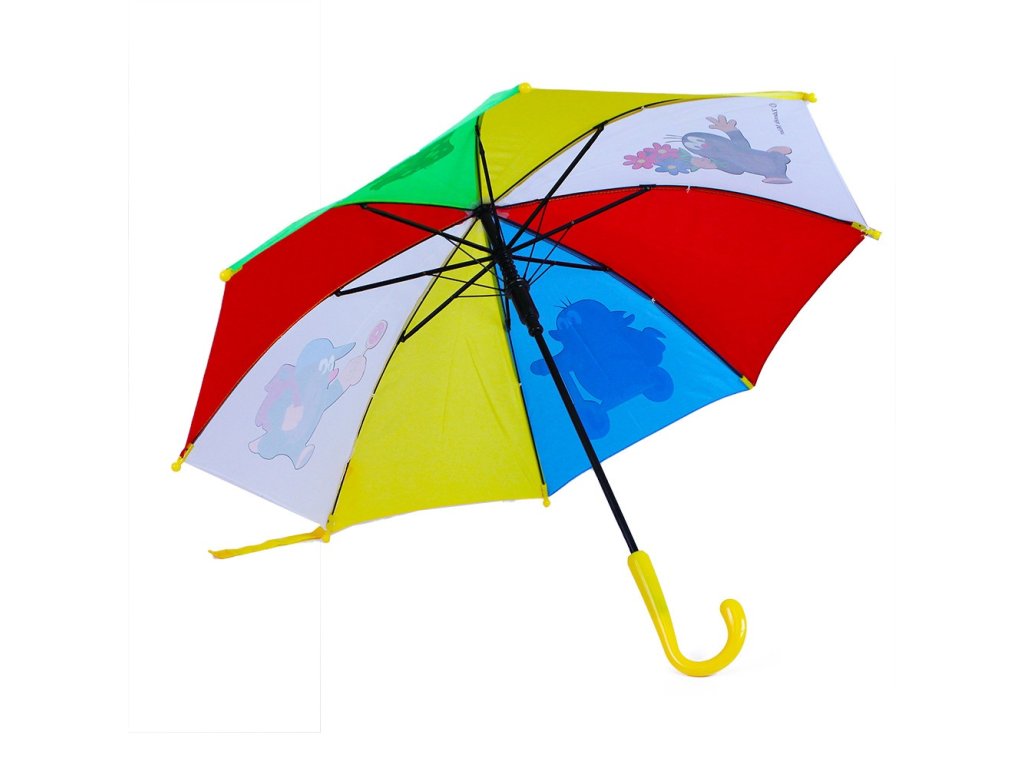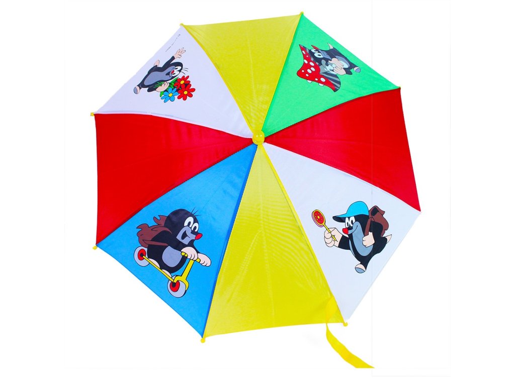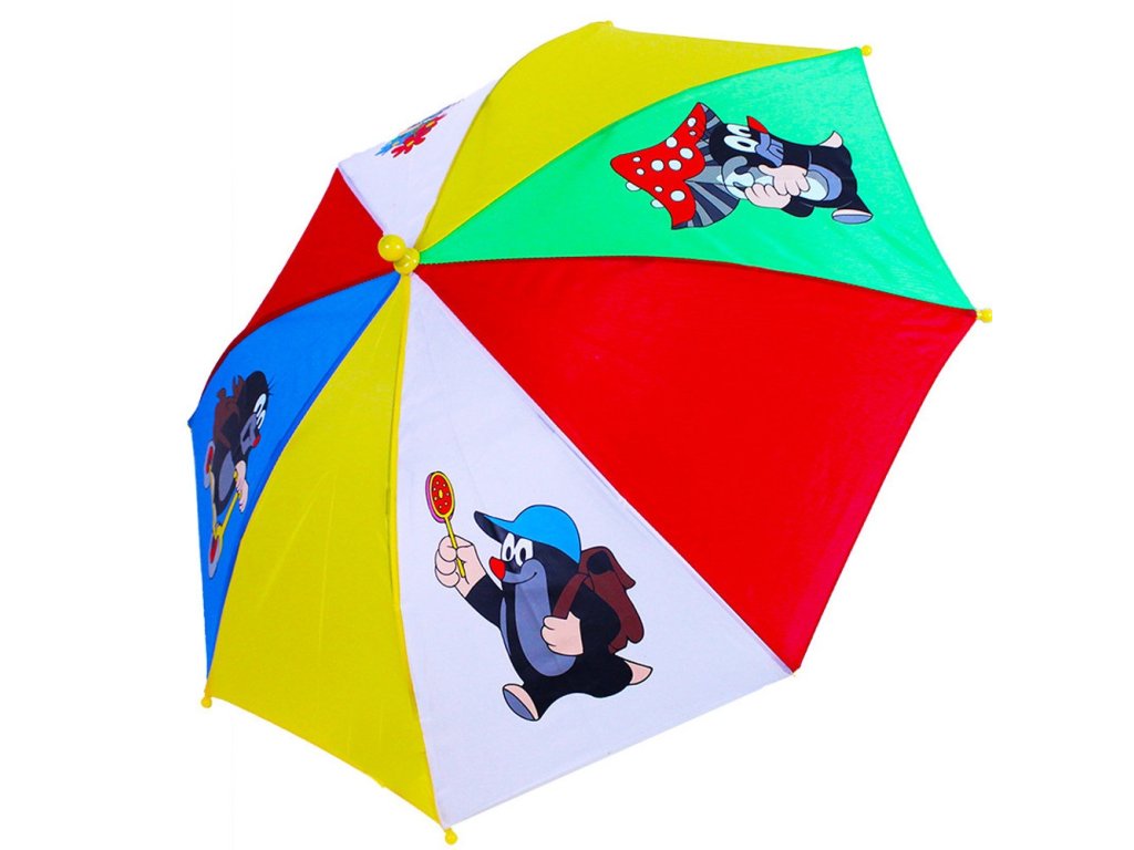 Teď už tě žádný déšť nepřekvapí! Tento nádherně barevný deštník se čtyřmi obrázky legendárního Krtečka a automatickým otevíráním nesmí chybět šatníku! Průměr deštníku po otevření je 70 cm. Tak hurá mezi dešťové kapky! Hlavní vlastnosti: deštník s obrázky legendárního Krtkaautomatické otevíránívhodné od 3 letSizing info