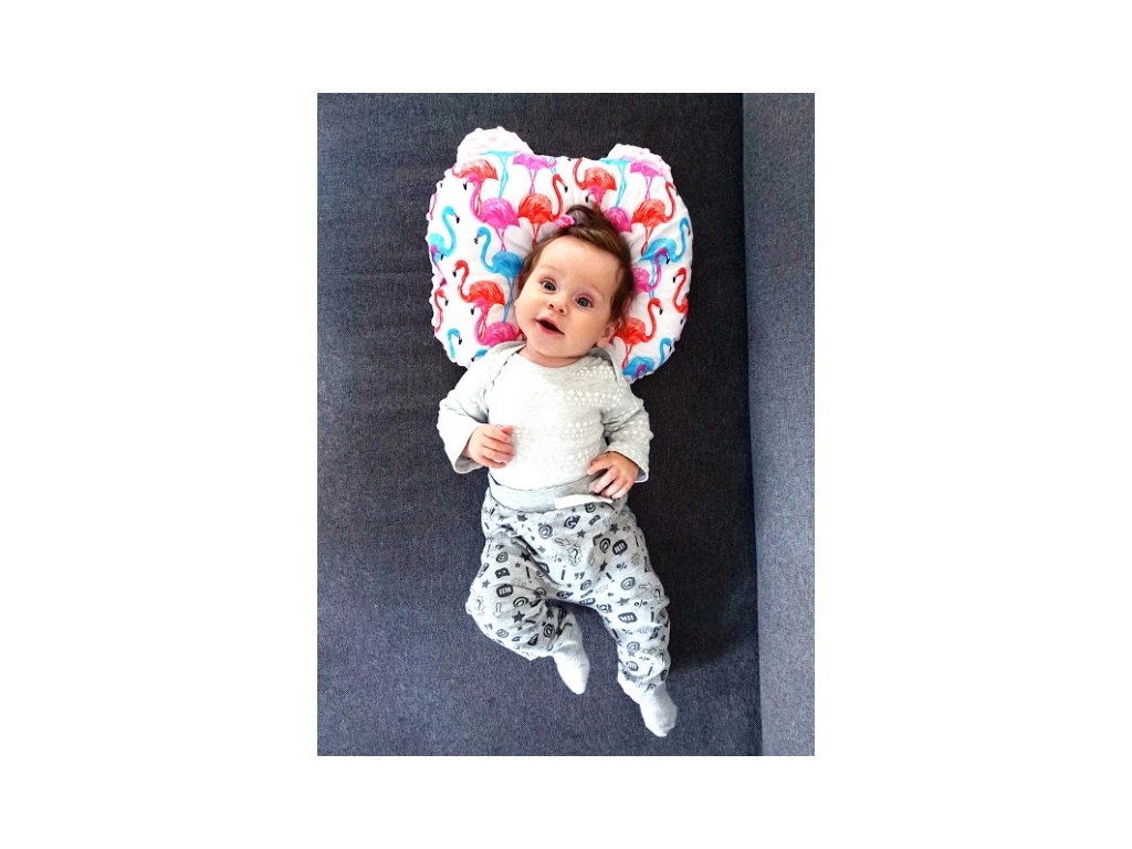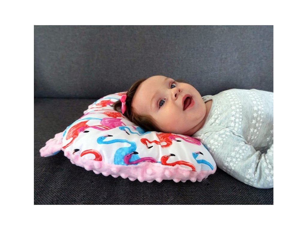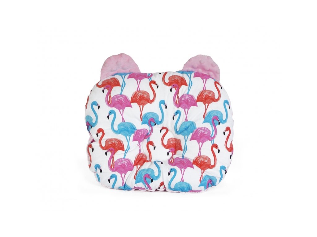 Baby Nellys Oboustanný polštářek s oušky, 30x35cm - Plameňák , minky růžová