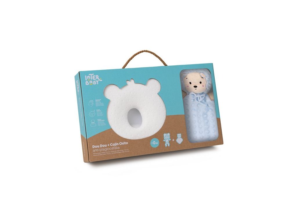Interbaby INTERBABY | SET MÉĎA - ergonomický polštářek + přítulka - modrý