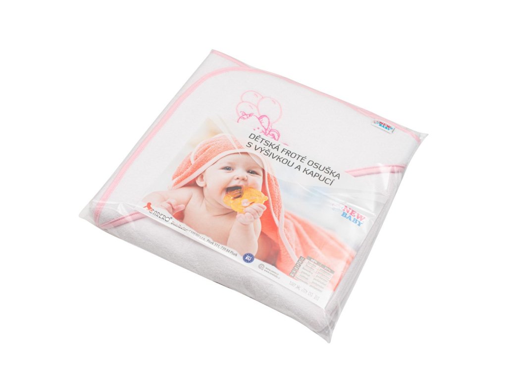 Dětská froté osuška s výšivkou a kapucí New Baby 80x80 bílá sloník