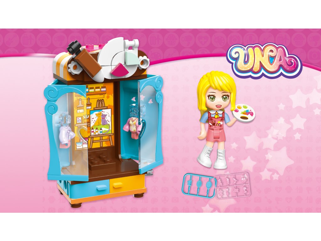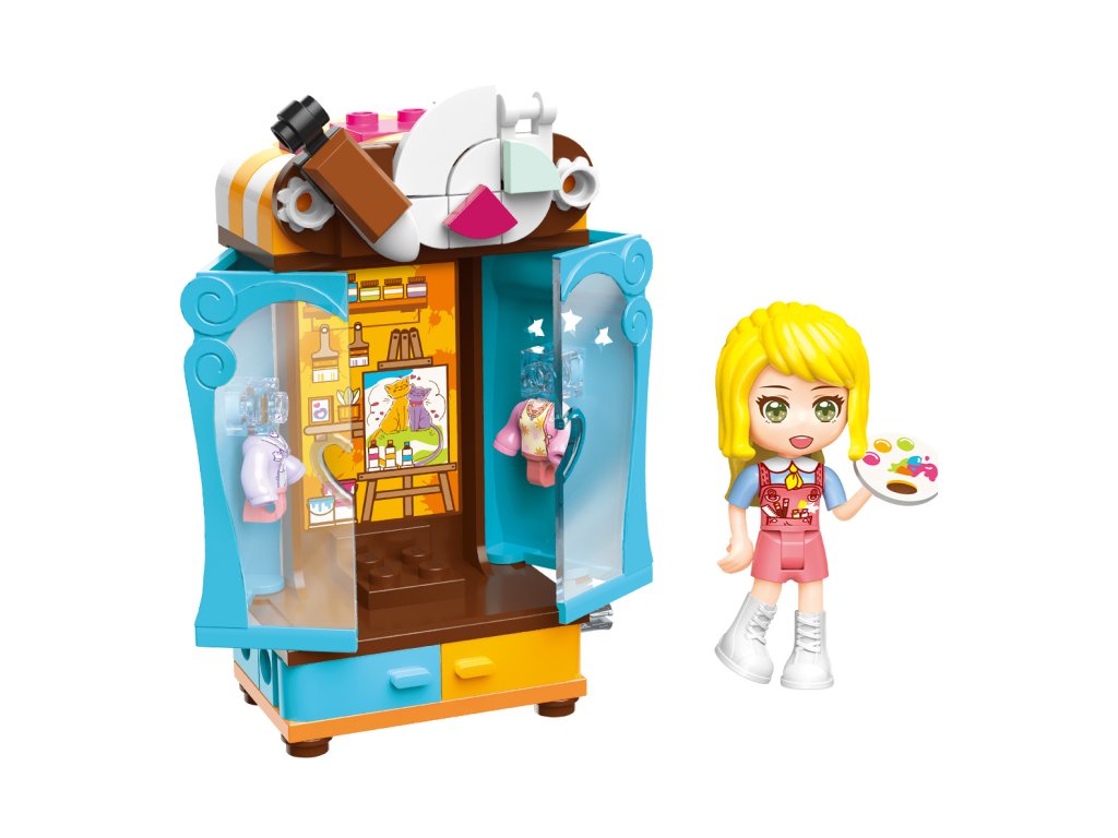 Osm variant stavebnic skříní s tématicky příslušícím vybavením a motivy, každá je vybavena jednou dívčí figurkou. Ve své přepychové šatní skříni vždy najdete, co hledáte, ať už chcete být stewardkou, doktorkou, nebo malířkou. Vyberte si a postupně sbírejte: Šatní kříň stewardky 34011-1 (obsahuje 83 dílků a 1 minifigurku)Šatní kříň doktorky 34011-2 (obsahuje 81 dílků a 1 minifigurku)Šatní kříň fotografky 34011-3 (obsahuje 83 dílků a 1 minifigurku)Šatní kříň malířky 34011-4 (obsahuje 83 dílků a 1 minifigurku)Šatní kříň stylistky 34011-5 (obsahuje 95 dílků a 1 minifigurku)Šatní kříň zpěvačky 34011-6 (obsahuje 82 dílků a 1 minifigurku)Šatní kříň pekařky 34011-7 (obsahuje 100 dílků a 1 minifigurku)Šatní kříň hostesky 34011-8 (obsahuje 88 dílků a 1 minifigurku) Hlavní vlastnosti: netoxický ABS plastSizing info