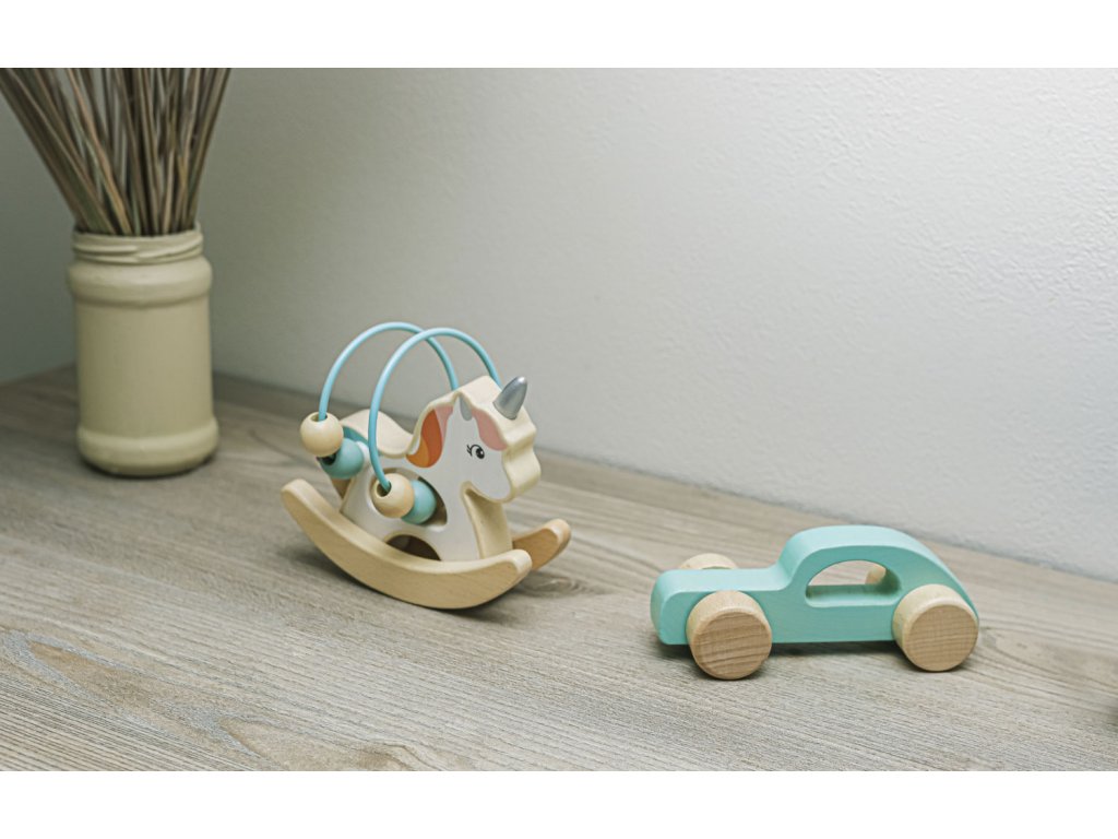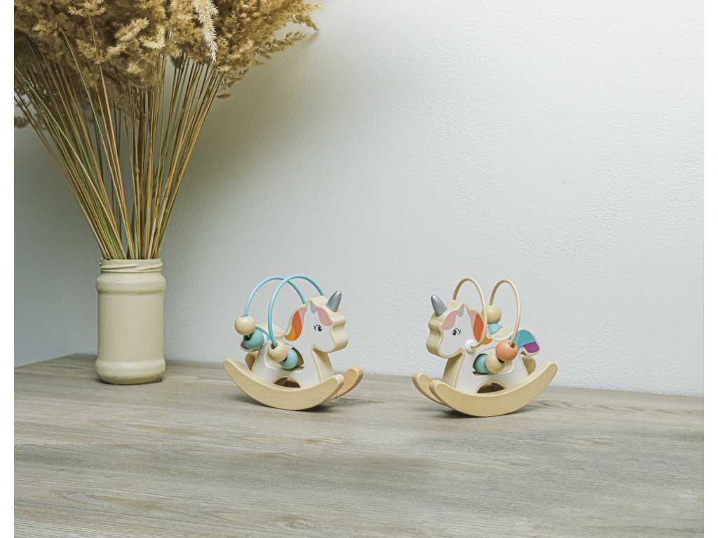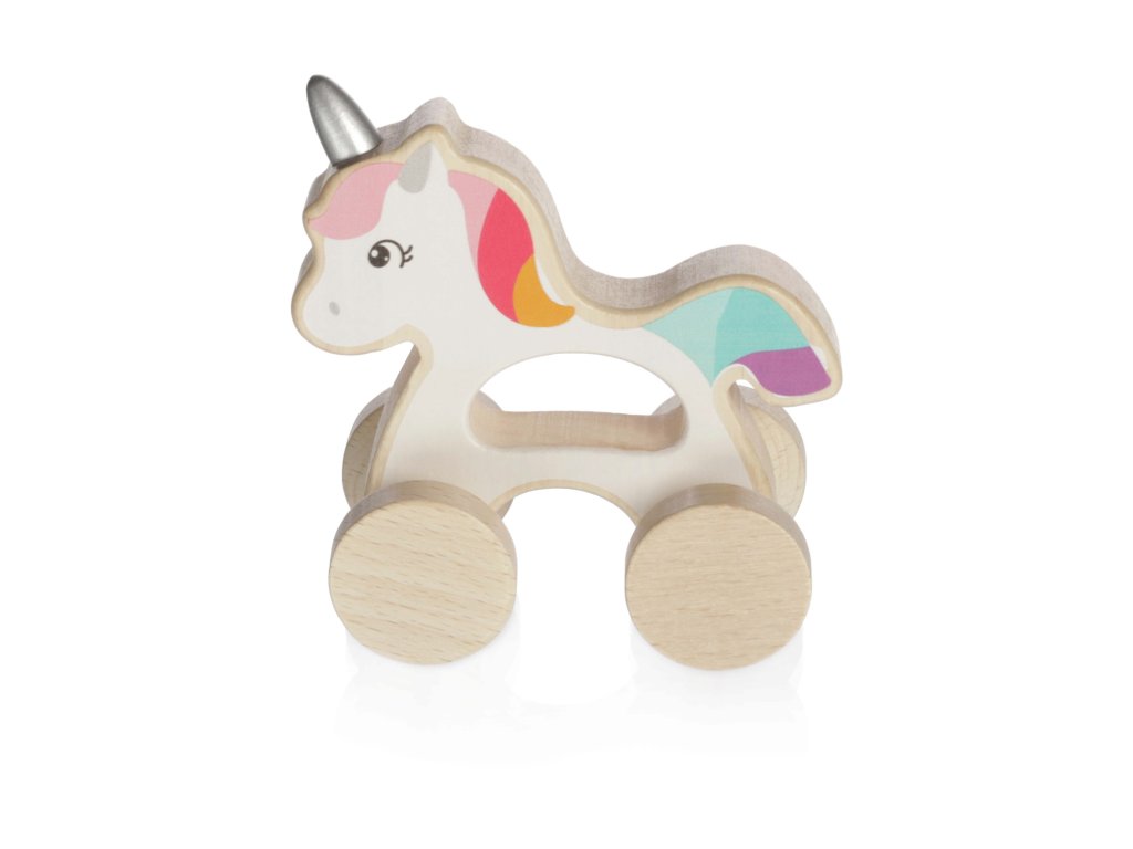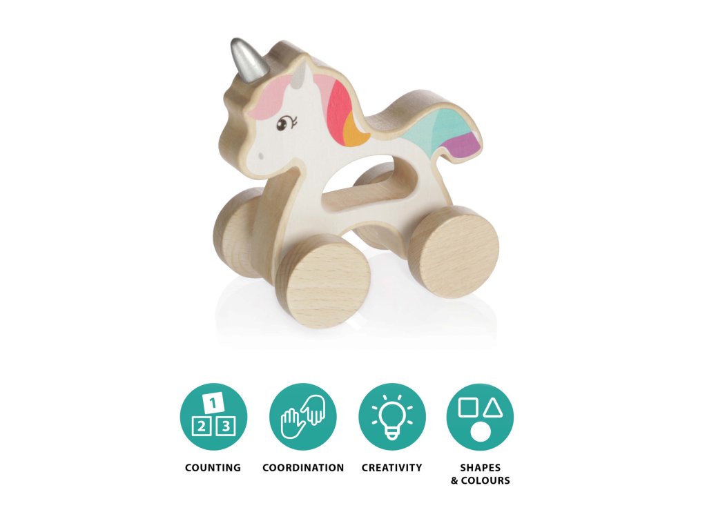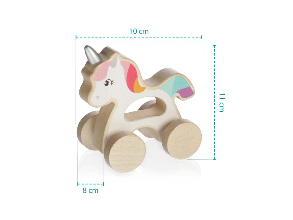 Lehký a kompaktní jezdící jednorožec je ideální hračkou pro malé dětské ručičky. Je vyrobený z přírodního kvalitního dřeva a natřený barvami na vodní bázi.