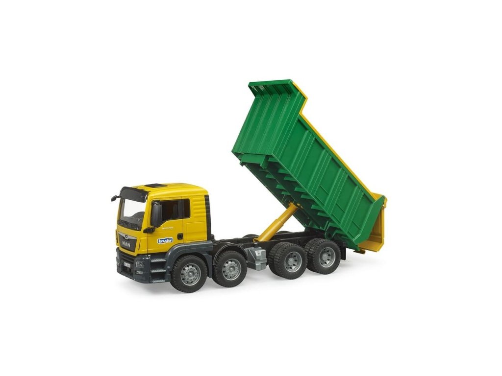 MAN TGS je dokonalým všestranným vozem pro staveniště, dálkovou přepravu a místní rozvážku. Toto robustně postavené nákladní vozidlo, vybavené výkonnými motory a nadprůměrným užitečným zatížením, je prototypem často popisovaného "všestranného vozu", který má na palubě mnoho inovací. Dvoubarevná kabina řidiče má dveře, které lze otevřít a nabízí každé figurce BRUDER bworld moderní pracoviště.Velká korba nákladního vozu má zadní sklápěcí korbu, které se automaticky otevírá při vysypání nákladu. Sklápěč MAN je vybaven 4 nápravami a robustními běhouny pro použití v těžkých podmínkách. K tomu se hodí zejména mobilní rypadlo Cat (BR2445) a bagr JCB 5CX (BR2454). Hlavní vlastnosti: otevírací dveřesklápěcí korbaprofilové pneumatiky kvalitní a detailní zpracování kompatibilní s figurkami Bworldvyrobeno v NěmeckuSizing info