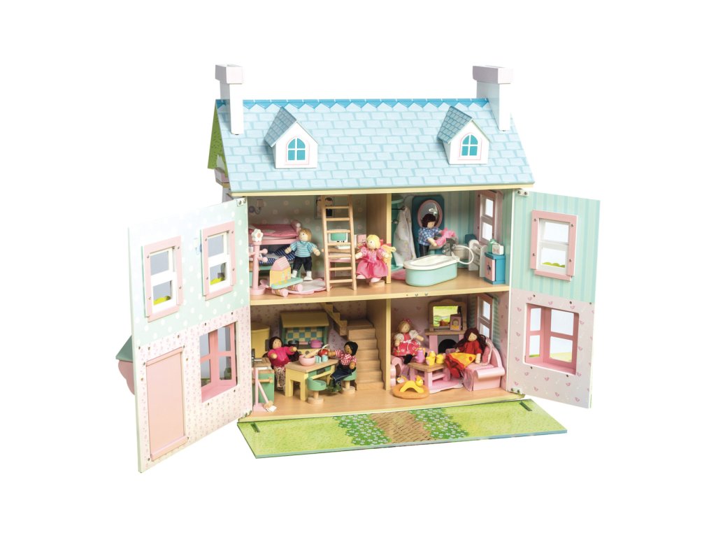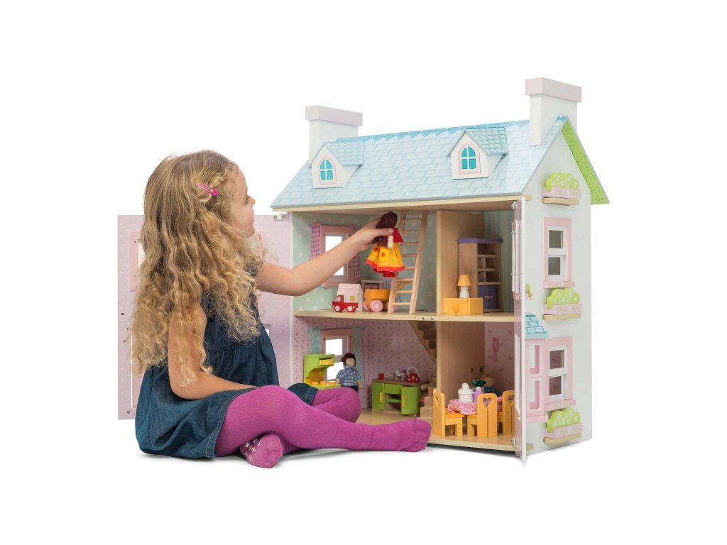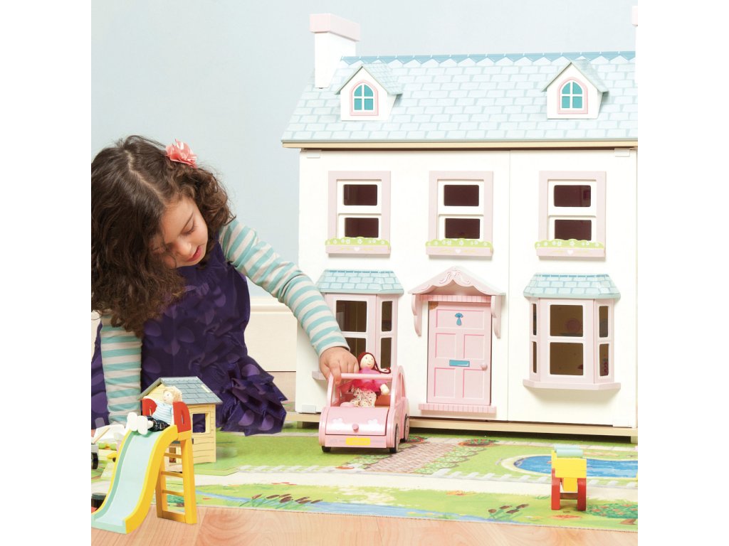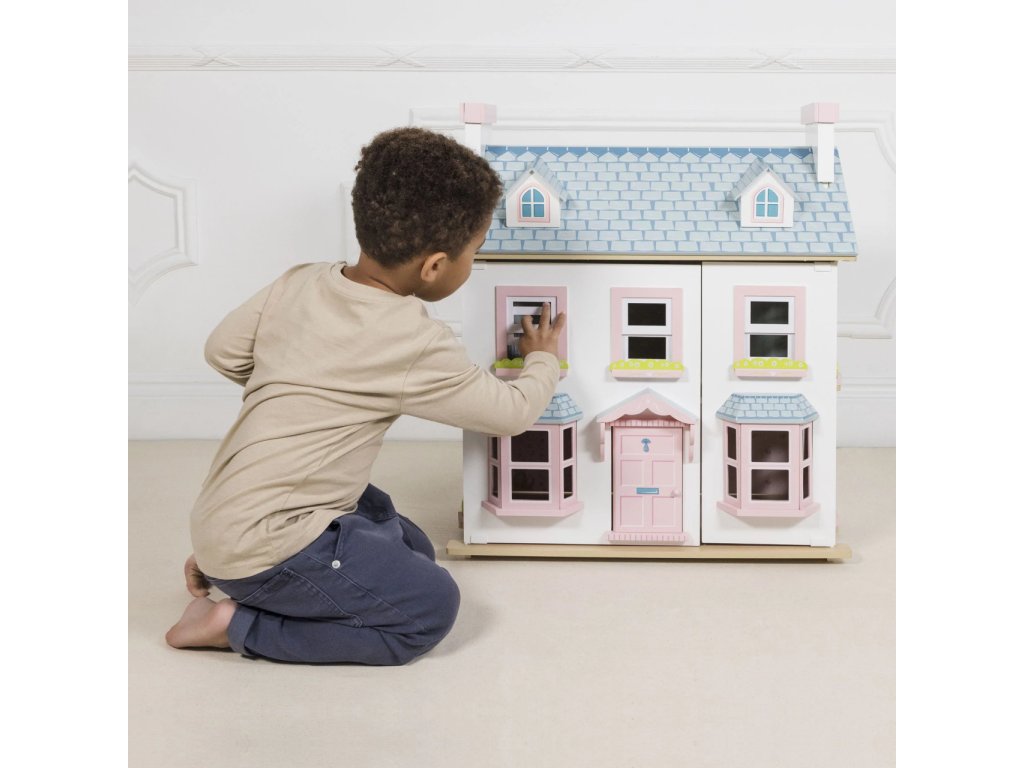 Dřevěný luxusní třípatrový ručně malovaný domeček Mayberry Manor. Jednotlivé pokoje jsou odlišně zdobené. Obsahuje schodiště prolínající se středem domečku. Pokoje jsou odděleny příčnou stěnou. Domeček má funkční otvírací okna, okenice a dveře. Domeček lze otevřít z jedné strany. Střecha je z poloviny odjímatelná a lze ji použít jako předzahrádku, spodní strana střechy je vhodně ilustrovaná. Domeček nabízí velký prostor pro hraní a rozvíjení kreativity. Domeček je určen pro panenky do 15 cm. Nábytek domečku není součástí balení, lze jej dokoupit z naší nabídky stejně jako panenky, venkovní hrací prvky včetně podložky. Vybavení domečku není součástí balení. Domečky Le Toy Van pro panenky jsou vytvářeny s láskou pro celoživotní kouzelnou hru. Používají udržitelné postupy, etiku a vyrábí krásné dřevěné hračky, které dnes i pro další generace inspirují a rozvíjí představivost. Hlavní vlastnosti: vyrobeno ze dřeva s certifikací FSCpomáhá s rozvojem koordinace pohybů, sociálních dovedností a rozvoji řečitřípatrový domeček pro panenky lze dovybavit nábytkem dle vlastní kreativitypodporuje v dlouhodobé představivé hřezlepšuje koordinaci v zábavném prostředívyrobeno eticky z udržitelného dřevagenderově neutrální design nabádá v sdílení mezi sourozencidekorováno netoxickými barvami, testováno dle nejpřísnějších standardů Značka a certifikát FSC® (Forest Stewardship Council) zaručuje, že dřevo, ze kterého byl produkt vyroben, nebylo vytěženo nelegálně a pochází z lesů obhospodařovaných šetrným či přírodě blízkým způsobem, ve kterém jsou dodržovány přísné environmentální a sociální požadavky. Značka FSC® na výrobku znamená, že svým nákupem pomáháte chránit lesy a podporujete šetrné, odpovědné či přírodě blízké hospodaření, díky kterému jsou naše lesy stabilnější, zdravější, mají přirozenou druhovou skladbu a lépe odolávají negativním následkům klimatických změn.Sizing info